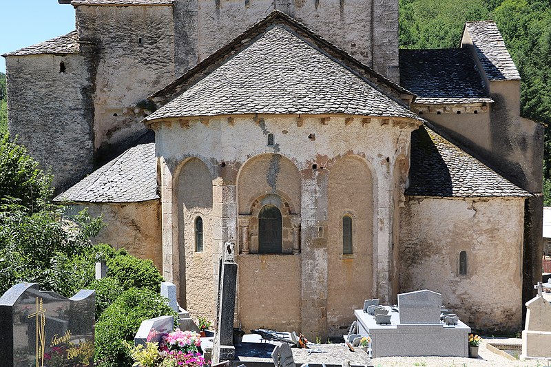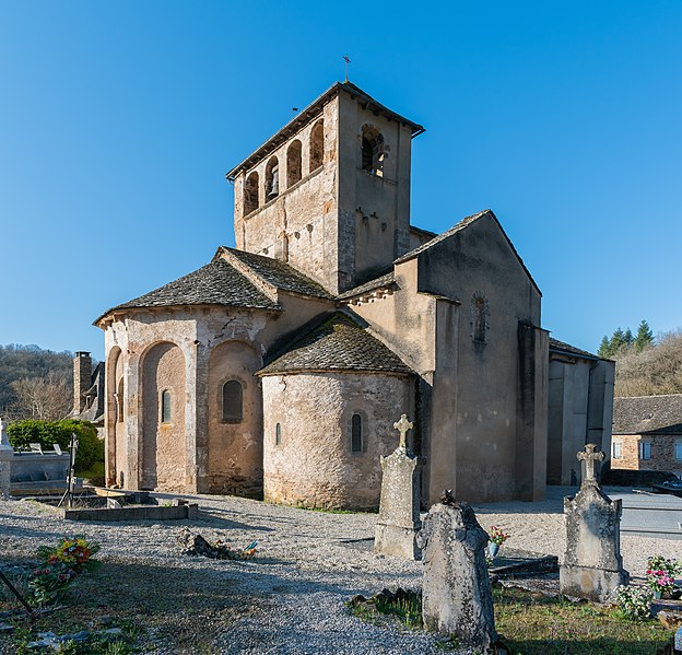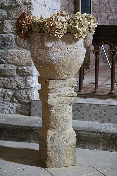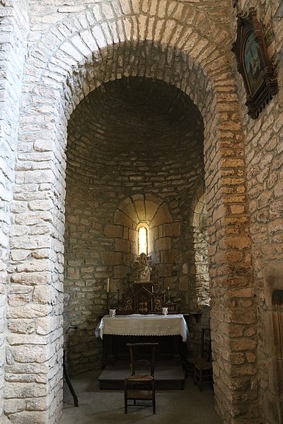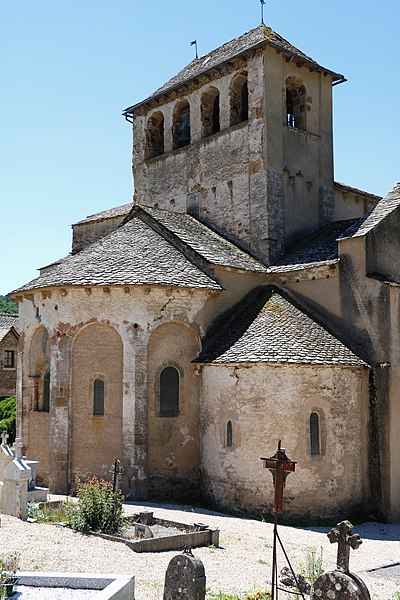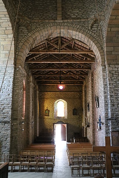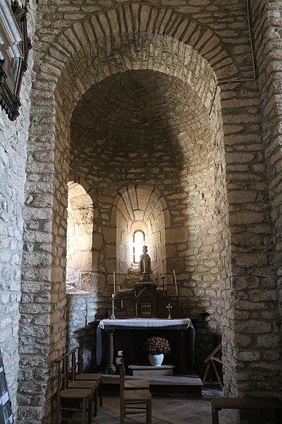 Au XIe siècle, une communauté dépendant de l'abbaye Saint-Victor de Marseille s'installe et édifie l'église à l'origine de la paroisse actuelle. L'édifice roman, remanié, a conservé son plan d'origine en croix latine, composé d'une nef et d'un transept. Sur le transept s'ouvrent l'abside principale et deux absidioles latérales. À la croisée du transept s'élève une coupole soutenue par des arcades en plein cintre à doubleau. La coupole est renforcée par quatre nervures qui reposent sur un bandeau. Quatre trompes d'angle assurent la transition du plan carré au plan octogonal de la coupole. La nef est couverte par une charpente, tandis que le transept est voûté en berceau et les absides en cul-de-four. Une porte en plein cintre met en communication les trois absides. Le chevet pentagonal présente une série d'arcades en plein cintre percées de fenêtres. À l'extérieur, l'édifice est couronné d'un clocher-peigne du XVIe siècle.