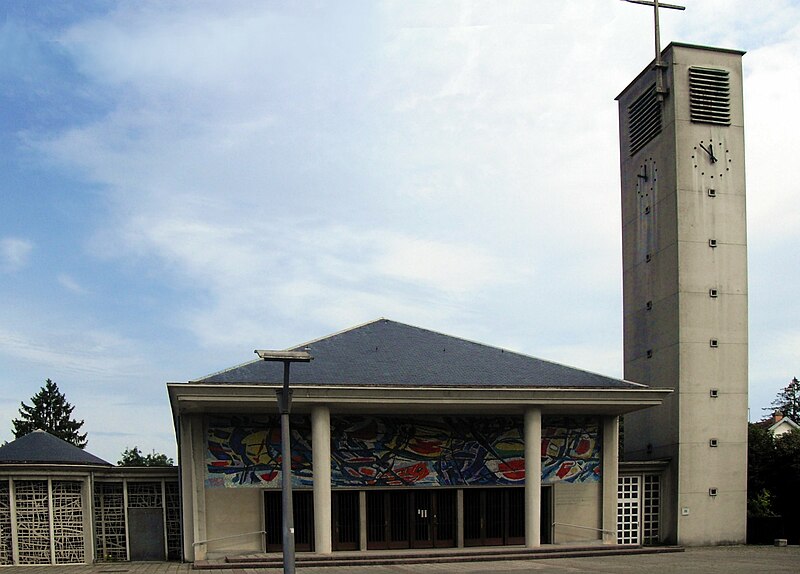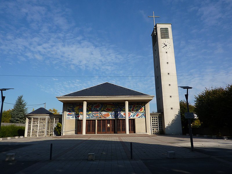 L'église du Sacré-Cœur à Audincourt (Doubs) est un édifice d'architecture moderne construit de 1949 à 1951 sur les plans de l'architecte Maurice Novarina pour une paroisse créée en 1946. À l'initiative de l'abbé Louis Prenel, les travaux furent financés par quêtes, dons et emprunts et en partie réalisés par des paroissiens et des ouvriers volontaires. Classée au titre des monuments historiques le 30 avril 1996, l'église associe béton armé et pierre appareillée et présente une voûte en berceau de bois. La nef unique, orientée nord-sud, se termine au nord par une abside semi-circulaire et s'appuie sur une crypte. L'édifice comporte un baptistère à l'ouest, un clocher élevé à l'est et une sacristie au nord ; le décalage du baptistère et du clocher évoque l'architecture byzantine, tandis que le portique d'entrée et la silhouette de la toiture renvoient aux temples antiques. Pour les décors, l'abbé Prenel, par l'intermédiaire du père dominicain Marie-Alain Couturier, fit appel à des artistes de renom. Une mosaïque abstraite aux couleurs chatoyantes de Jean Bazaine orne la façade sud et ce même artiste a conçu le vitrail du baptistère. Le maître verrier Jean Barillet a réalisé ce vitrail et a produit les dix-sept dalles de verre horizontales de la nef et du chœur, d'après des cartons de Fernand Léger. Léger a retenu la Passion comme thème et renouvelle le genre en y insérant des objets du quotidien tels que fouets, tenailles, marteaux et clous ; il est aussi l'auteur des cartons de la tapisserie située derrière le maître-autel. Les vitraux de la crypte, le pavement et une mosaïque murale sont l'œuvre de Jean Le Moal. La cuve baptismale est simplement sculptée dans un bloc de pierre. Édifice d'après-guerre, l'église du Sacré-Cœur illustre les attentes des chrétiens et des artistes de l'époque en mêlant architecture minimaliste, utopie pacifiste et art sacré. Chaque style de vitrail exprime l'originalité de son auteur tout en contribuant au volume et à la sérénité de l'ensemble.