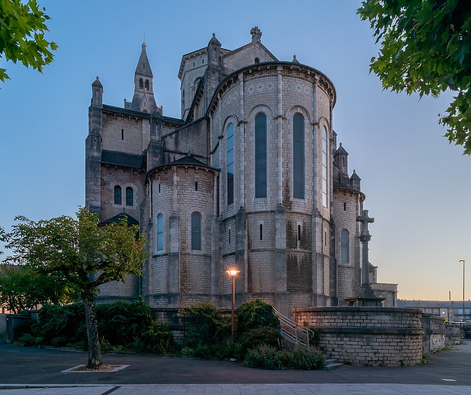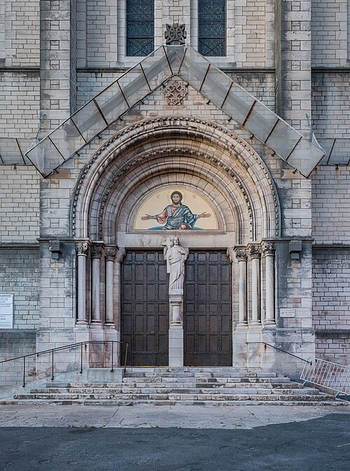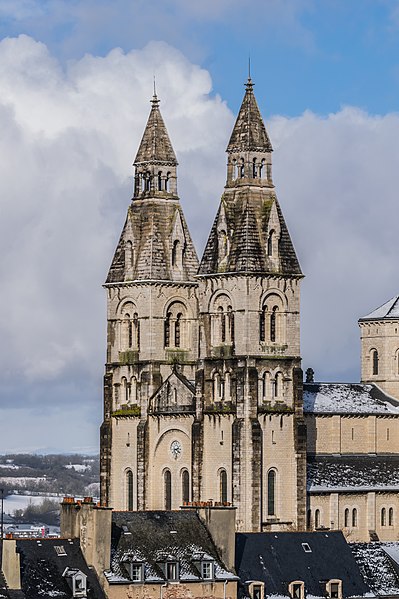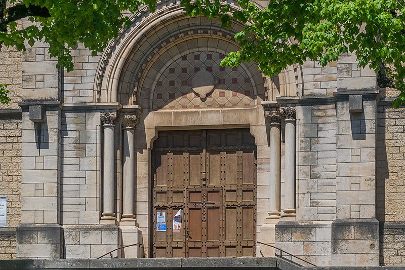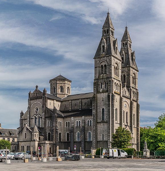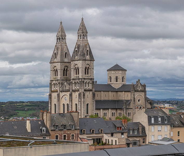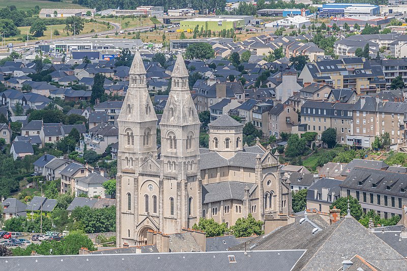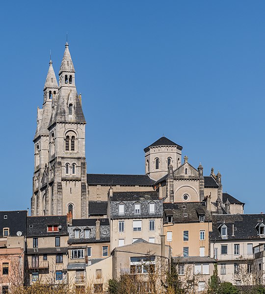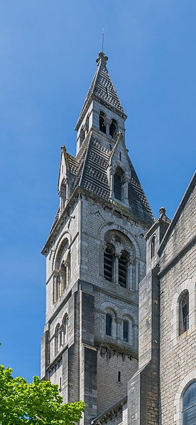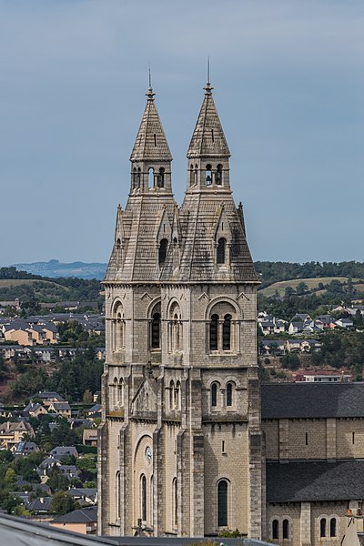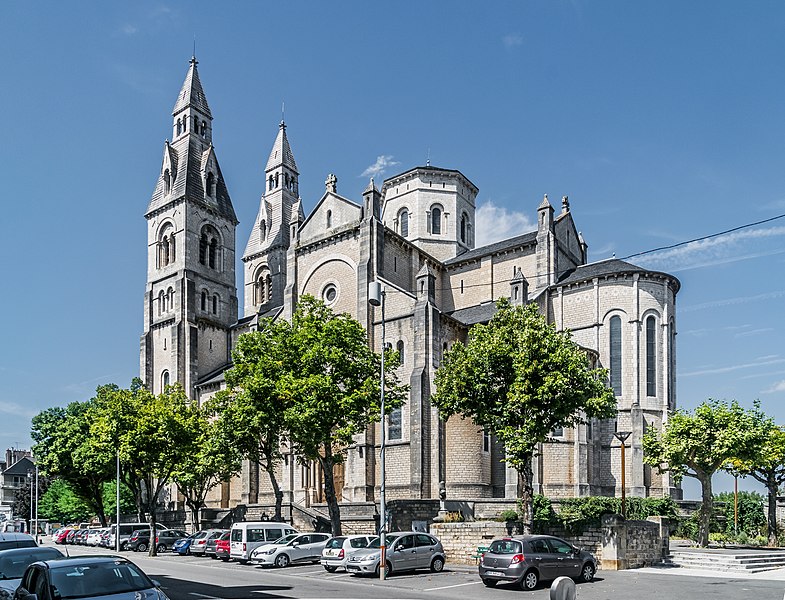 L'église du Sacré-Cœur de Rodez (Aveyron) a été commandée à l'architecte Henri Pons en 1885 pour répondre à l'urbanisation des faubourgs. Le chantier s'est déroulé de 1886 à 1898, la première pierre ayant été posée en septembre 1886, et l'édifice ayant été consacré le 28 juin 1898. Conçue dans un style néo-roman, l'église s'inspire de l'abbatiale Sainte-Foy de Conques et des églises de pèlerinage, adoptant un plan en croix latine avec une abside de chœur flanquée de chapelles échelonnées. Une tour-lanterne octogonale s'élève au-dessus de la croisée du transept. Le décor intérieur repose essentiellement sur la mosaïque et la sculpture ; en septembre 1888 Henri Pons atteste l'achèvement de sept chapiteaux réalisés par le sculpteur Couderc (archives diocésaines). L'édifice a été construit à l'initiative de Mgr Bourret. Il succède à une première église, Saint-Cyrice, édifiée dans la première moitié du XIXe siècle pour desservir le faubourg et le cimetière ouvert en 1831, mais rapidement insuffisante face à l'accroissement de la population dans la seconde moitié du siècle ; sa construction était en cours en 1852 et serait achevée en 1866. L'église du Sacré-Cœur est inscrite au titre des monuments historiques en 2005.