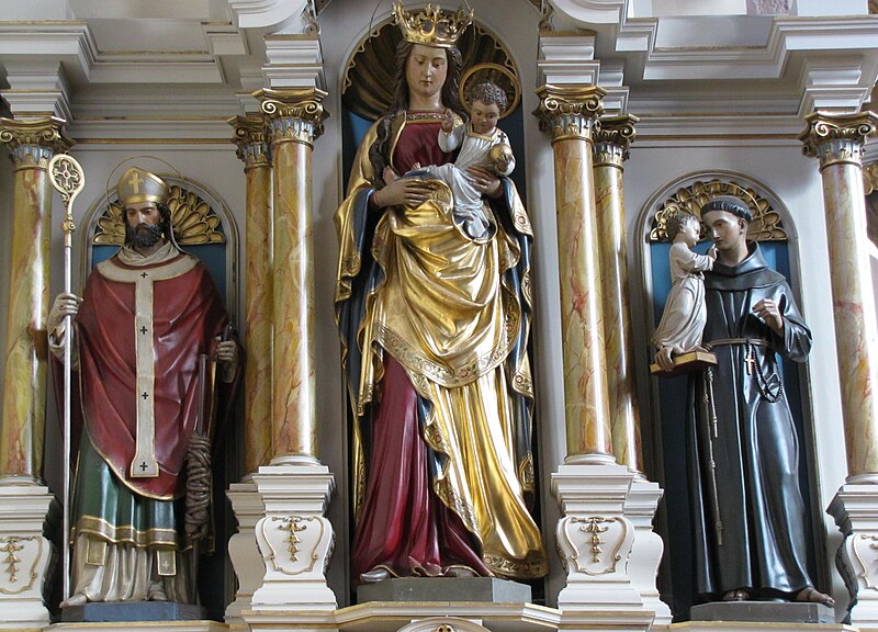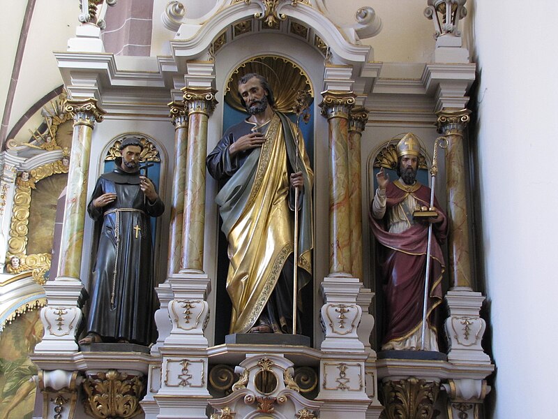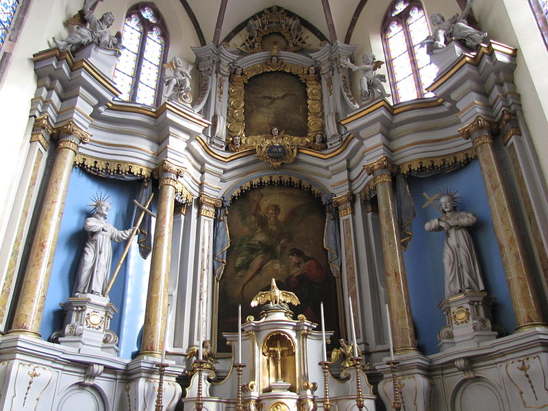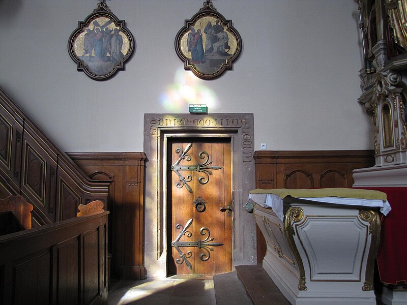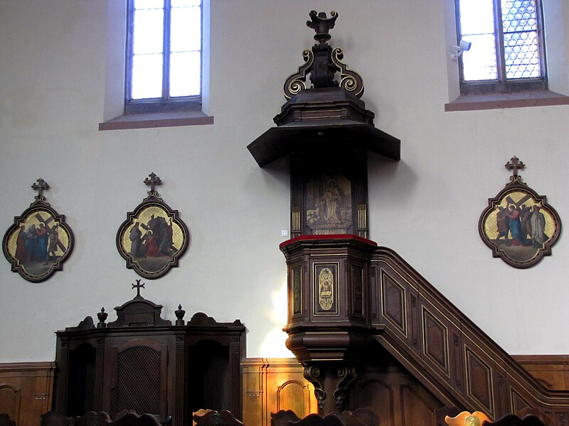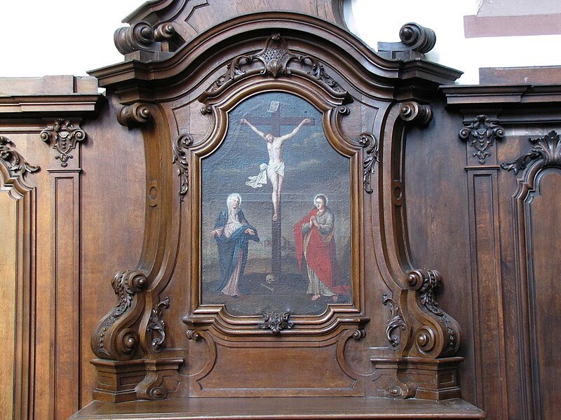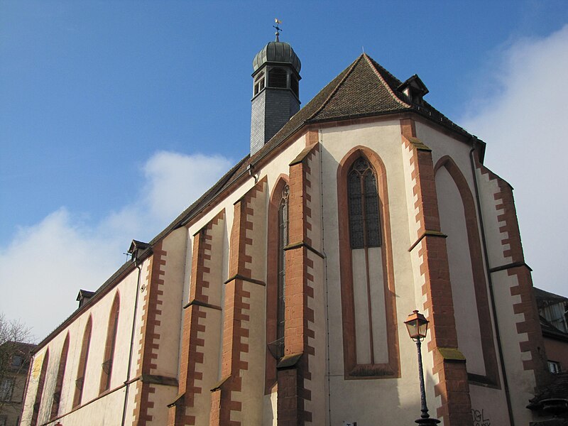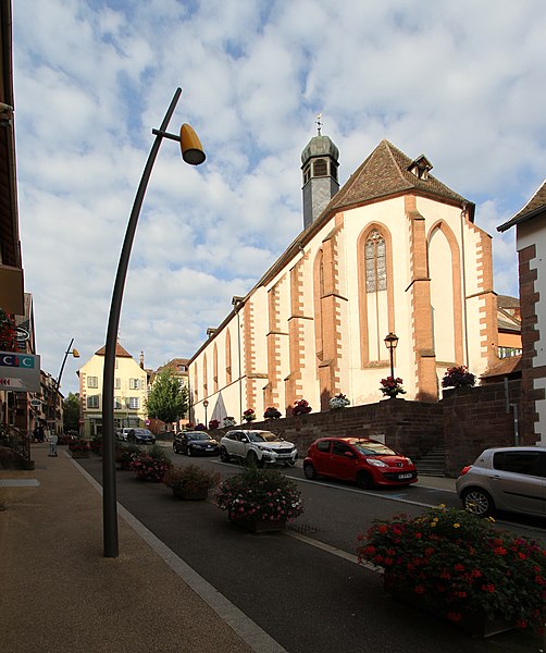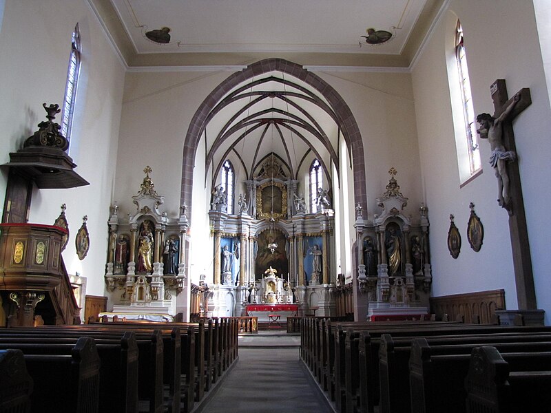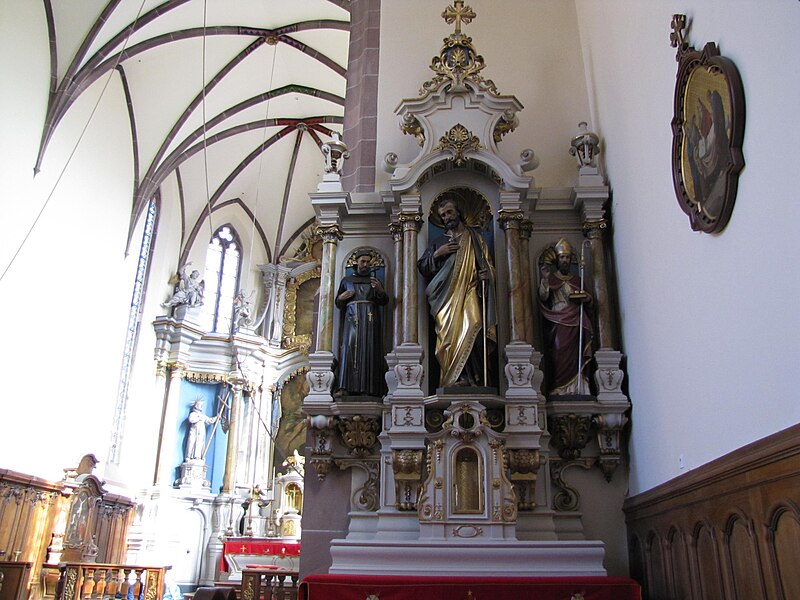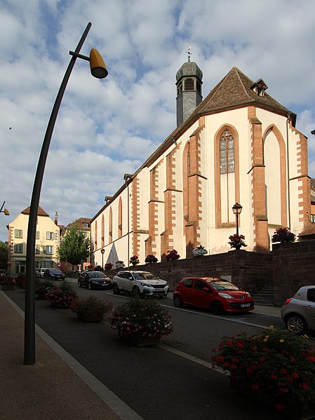 Le maître-autel baroque ou retable date de 1736. Le buffet d'orgues remonte à 1703 ; un orgue est toutefois attesté dès 1609 et aurait été l'œuvre de Johann Faber, tandis que l'instrument actuel, daté de 1763, est attribué à Louis Dubois. Trente-deux feuillets manuscrits de chant grégorien, sur parchemin et provenant du début du XIVe siècle, ont été trouvés collés sur les parois et sous le sommier de l'orgue. Le cloître, en grès rose et de style gothique, comporte des éléments des XIVe et XVIIe siècles et conserve des peintures murales, dont une fresque de l'Assomption datée du XVIIe siècle. Une fontaine de 1733 a été transformée en fontaine murale d'une maison située 6 rue des Murs ; elle porte une marque de tâcheron et une inscription.