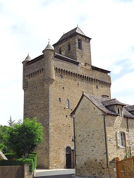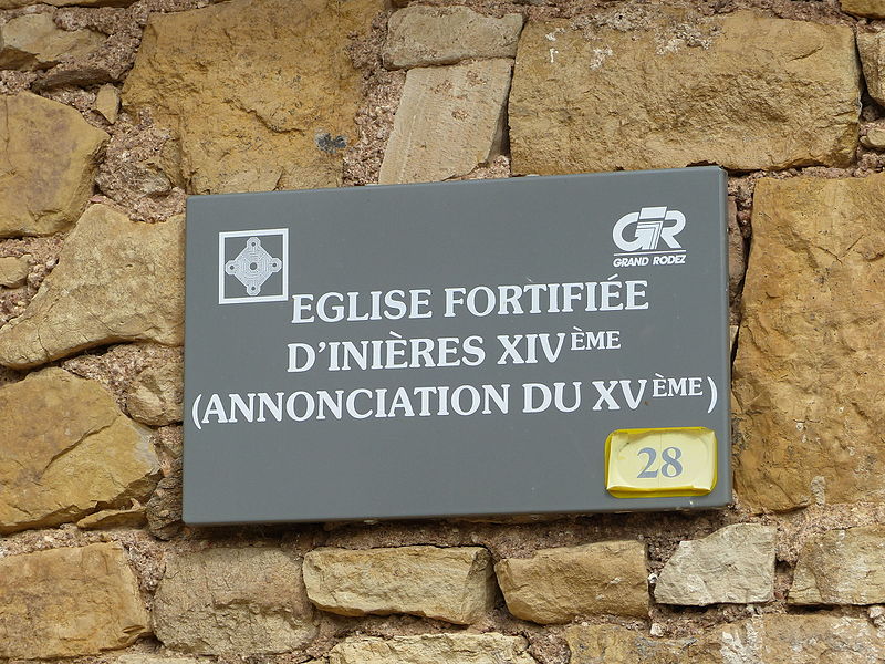 L'église fortifiée d'Inières, ou Notre-Dame-de-la-Nativité, se trouve dans le hameau d'Inières sur la commune de Sainte-Radegonde (Aveyron, Occitanie). Elle est classée au titre des monuments historiques depuis le 4 janvier 1921. L'édifice repose sur une nef du XIIIe siècle et a été renforcé au XIVe siècle par l'élévation d'un donjon. Ce donjon, couronné de mâchicoulis, est flanqué sur la face ouest de deux tourelles en encorbellement. Un petit clocher a été placé au centre de l'église. Le donjon comprend plusieurs étages, chaque niveau comportant plusieurs chambres ouvrant sur un couloir central, et les murs conservent des traces de décoration peinte. Le village dépendait de la juridiction de l'évêque de Rodez et l'église fut anciennement un prieuré de Saint-Jacques, cédé successivement par l'évêque aux chanoines de la cathédrale de Rodez comme prébende attachée à leur canonicat. Un acte de 1442 autorise la fortification de l'église et la démolition des parties en ruine, en réservant à l'évêque et à ses officiers le droit d'entrer et de visiter le fort ; le recteur pouvait entrer à tout instant et disposait d'une clé. La chambre située au‑dessus du chœur, avec cheminée, fut édifiée par P. Cocural, chantre de la cathédrale de Rodez, et demeure à perpétuité à l'usage du prieur et des chapelains. Hélion de Jouffroy, chanoine et grand chantre de la cathédrale de Rodez et prieur d'Inières, fonda la chartreuse de Rodez et le couvent des Annonciades de Rodez. Le domaine de Caumels, proche d'Inières, appartenait à la chartreuse de Rodez. Les dispositions du refuge de l'église d'Inières s'inspirent de celles adoptées pour l'église fortifiée Sainte-Radegonde. Au sud du village, sur une nappe de galets déposés au Miocène, des traces d'une industrie acheuléenne sur quartz, datée d'environ 320 000 ans, ont été mises au jour : il s'agit essentiellement de choppers, les autres outils étant représentés par des encoches et des denticulés. Parmi les études consacrées au site figurent les travaux de Louis Causse et de Bernard de Gauléjac.
