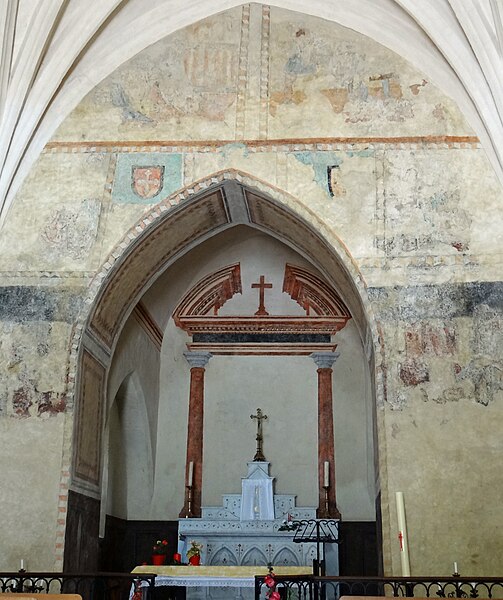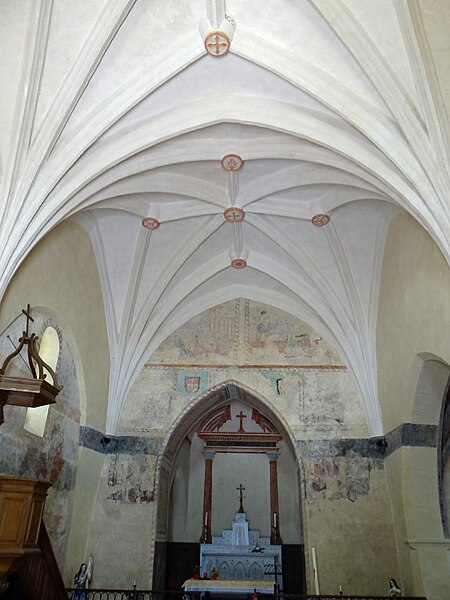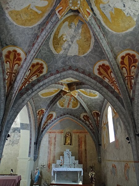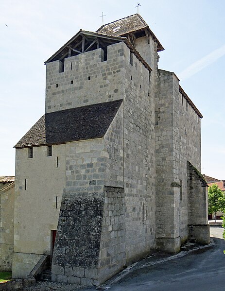 L'église Saint-Jean de Villeneuve-de-Mézin, située sur le territoire de la commune de Lannes (Lot-et-Garonne), remonte à la fin du XIIe siècle, éventuellement au début du XIIIe siècle selon certaines mentions. Elle a été transformée et agrandie aux XVe et XVIe siècles. L'édifice comprend un chœur à chevet plat et une nef dont les voûtes en croisées d'ogives, avec liernes et tiercerons, datent du XVe siècle. Sur la face sud se trouvent deux chapelles voûtées en croisées d'ogives qui semblent avoir été ajoutées au XVIe siècle. Dès sa construction, l'église a été intégrée à un dispositif défensif : les murs de la nef et du chœur sont très épais et se terminent par un crénelage desservi par un chemin de ronde. Un chéneau en pierre, porté par une assise en encorbellement, subsiste encore. La trace de l'ancienne toiture est visible sur le mur du clocher, au-dessus de l'arc triomphal, et une porte percée dans ce mur marque le niveau d'un étage où pouvaient se réunir défenseurs et habitants. Un escalier en pierre logé dans l'épaisseur de la façade ouest permettait d'accéder au chemin de ronde. Le système défensif pouvait être complété par des hourds en charpente, soutenus par des pièces de bois engagées dans des trous carrés visibles sous le chemin de ronde. Le portail occidental est surmonté d'un chrisme ancien. Selon Marboutin, la cure aurait été donnée à l'abbaye de Saint-Sever par Guillaume Sanche à la fin du Xe siècle; au XIIe siècle la cure dépendait du prieuré de Fonclair (Buzet-sur-Baïse), qui nommait le curé. L'église faisait partie du castrum de Villeneuve, mentionné en 1259, et l'on relève des vestiges de l'enceinte avec un mur et une porte fortifiée à l'ouest. L'édifice comportait des salles hautes au-dessus du chœur et de la nef; à la fin du Moyen Âge ces salles furent surélevées et pourvues d'un chemin de ronde, de créneaux et de hourds, comme l'atteste la ligne de trous de boulins. À la fin du XVIe ou au début du XVIIe siècle, la nef fut voûtée en remployant une partie de la hauteur de la première salle haute et un deuxième vaisseau fut construit au sud ; les voûtes de ce bas-côté reçurent des peintures au XVIIe siècle. Un escalier a été adossé au mur est en 1880 et des contreforts ont été ajoutés; la façade ouest et le portail ont été restaurés en 1884 sous la direction de l'architecte Casimir Laffitte, et le clocher a fait l'objet d'une restauration en 1901 par l'entrepreneur Adrien Barbé. La porte d'entrée en plein cintre présente trois ressauts ornés de têtes de clous; une pierre gravée au-dessus porte le monogramme du Christ (croix, alpha, oméga, X et P) ainsi que les lettres B A I G S N T, dont la signification n'a pas été clairement élucidée. Des vestiges de peintures subsistent dans la chapelle latérale. L'édifice est classé au titre des monuments historiques depuis 1941.