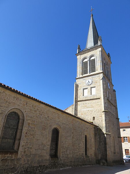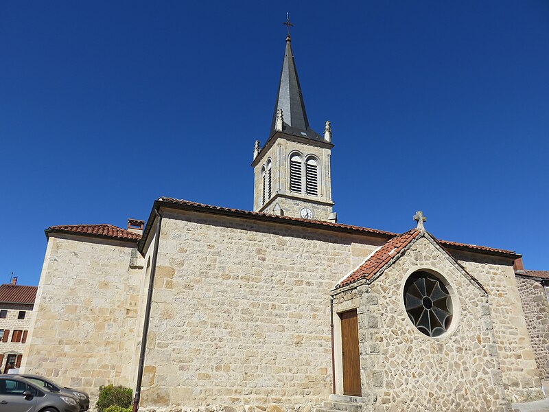 L'édifice a été construit au XIIe siècle et est cité en 1183 comme possession de l'abbaye de l'Île Barbe (Rhône). Dans la première moitié du XVe siècle la façade ouest et le porche sont réédifiés, et on ajoute le clocher ainsi que la première chapelle nord du chœur. Au cours de la première moitié du XVIe siècle sont élevées les deuxièmes chapelles nord et sud de la nef, la première chapelle sud du chœur et la porte qui la jouxte à l'ouest. L'ancienne sacristie, aujourd'hui deuxième chapelle nord du chœur, est élevée en 1711 et la première chapelle sud de la nef en 1712, dates portées sur les murs extérieurs; c'est probablement à cette époque que les élévations extérieures sont homogénéisées. Un cadran solaire daté de 1749 est gravé sur le flanc sud de la chapelle de 1712, et la fenêtre de la première chapelle nord du chœur est refaite en 1768, date inscrite sur la clé d'arc. En janvier 1851 le curé Pupier propose un projet d'agrandissement qui est réalisé en 1851-1852 sous la direction de l'architecte Louis Buhet, à Saint-Bonnet-le-Château : l'ancienne sacristie est transformée en chapelle, une seconde chapelle est élevée en pendant et un mur les joignant, portant la date 1851, enferme l'abside romane; les séparations entre les chapelles anciennes sont supprimées pour former des collatéraux et une nouvelle sacristie est édifiée (portant la date 1851). L'étage supérieur du clocher est reconstruit en 1872 par Favrot, architecte de l'arrondissement. Une restauration générale a lieu en 1937-1938 sous la direction de Jean Bernard, architecte en chef du département de la Loire : rejointoiement des murs intérieurs et extérieurs, dégagement de l'élévation extérieure de l'abside, reconstruction de la voûte de la deuxième chapelle nord du chœur (portant la date 1938) et édification d'un porche oriental.