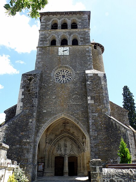 L'église Saint-Sauveur, ensuite dédiée à la Transfiguration, se situe à Puy-l'Évêque dans le Lot. Elle est mentionnée en 1289 par le notaire Arnal de Salas. Un édifice bâti à la fin du XIIIe siècle — daté notamment d'après les chapiteaux et la porte de l'élévation nord — a été en grande partie reconstruit à la fin du XIVe siècle. Une nouvelle consécration a eu lieu en 1392, alors que l'église était encore inachevée. Les dernières chapelles, ainsi que le portail ouest et la tour-porche qui le précède, datent probablement de la fin du XVe ou du début du XVIe siècle. Au XIVe siècle, l'église comprenait une nef flanquée de chapelles séparées ; leurs murs ont ensuite été remplacés par des arcs pour former des bas-côtés continus. Selon Edmond Albe, l'arc d'une fenêtre porte la date de 1680 et le nom du maître d'œuvre Alagnou. Une échauguette ajoutée à l'angle nord-est de la nef pourrait remonter à la fin du XVIe ou au début du XVIIe siècle. Après l'effondrement de la voûte d'une chapelle nord en 1877, l'architecte diocésain Émile Toulouse a entrepris des travaux importants : il a remplacé le chevet plat par une grande abside polygonale encadrée de deux annexes et transformé les chapelles en bas-côtés en supprimant leurs murs latéraux. Le clocher, la double porte d'entrée et l'escalier d'accès aux étages du clocher ont été classés au titre des monuments historiques le 20 mars 1912, et le reste de l'église a été inscrit le 21 octobre 1925. Un tableau de l'édifice est référencé dans la base Palissy.