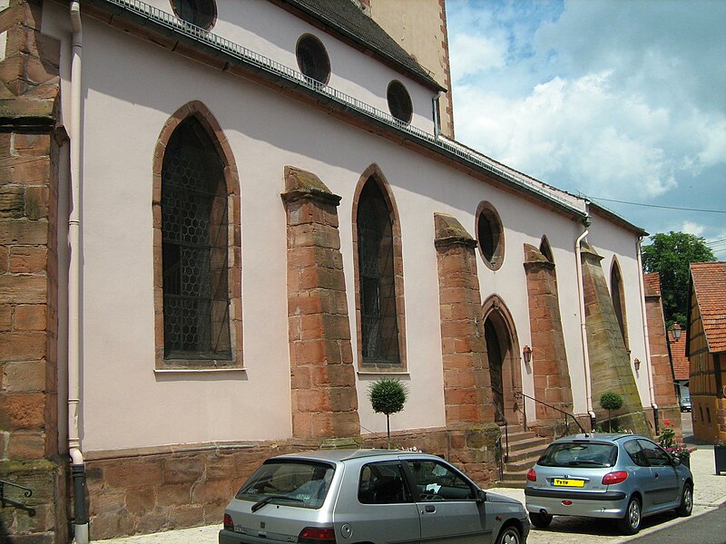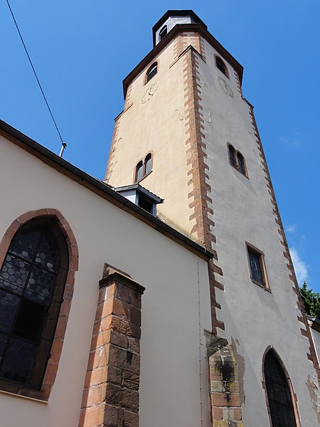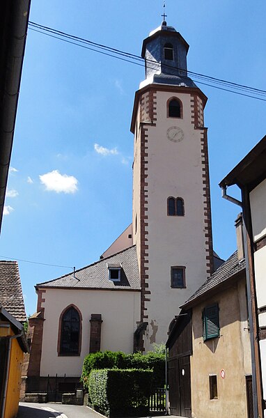 La partie inférieure de la tour voûtée, qui faisait office de chœur, date du XIVe siècle. La nef fut démolie et reconstruite en 1613 à l'instigation du comte Jean-Reinhard I de Hanau-Lichtenberg : la nouvelle construction est plus large et comportait deux niveaux de tribunes, sans être plus longue, puisque l'on conserva une portion du mur occidental de l'ancien bâtiment. La tour fut alors surélevée d'un niveau et intégrée dans l'agrandissement de la nef. En 1728 la tour reçut un beffroi octogonal à bulbe et clocheton et les réseaux gothiques des fenêtres de 1613 furent supprimés pour augmenter la luminosité; les voûtes des bas-côtés et des vestibules flanquant la tour furent déposées au milieu du XVIIIe siècle (1758 et 1762). L'installation de l'orgue réalisé par Jean-André Silbermann en 1777-1778 entraîna la transformation de la loge seigneuriale, décorée à cette occasion de stucs. Des campagnes de restauration menées par Théo Berst ont concerné l'extérieur en 1912 et l'intérieur en 1913, et le deuxième étage des tribunes a été supprimé en 1965.