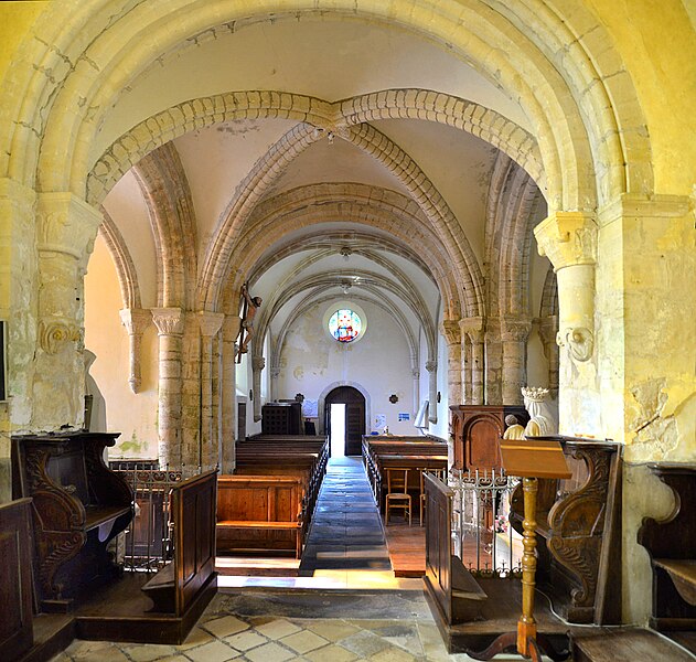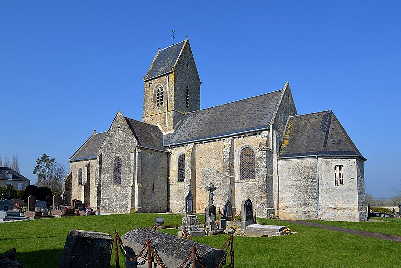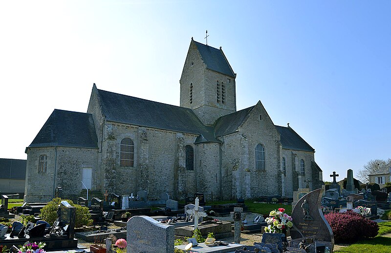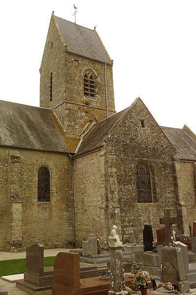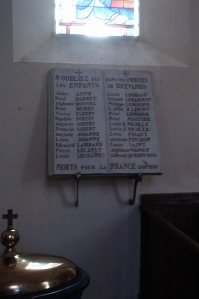 L'église Saint-Martin de Brévands, située dans le bourg de Brévands au sein de la commune nouvelle de Carentan‑les‑Marais (Manche, Normandie), est datée approximativement de la première moitié du XIIe siècle sur la base de l'analyse architecturale et de comparaisons avec des édifices datés. L'édifice adopte un plan en croix latine avec transept saillant, surmonté d'une tour carrée à toiture en bâtière ; le chœur compte deux travées et se termine par un chevet plat, une sacristie polygonale s'étant adossée plus tard au chevet. De nombreux éléments relèvent d'une fin d'époque romane : la base du mur sud de la nef présente un appareillage en opus spicatum ; la croisée du transept repose sur quatre piles composées qui reçoivent des ogives formées d'un tore central encadré de deux tores plus fins. Les arcades en plein cintre, à double rouleau, et les voûtes d'ogives des bras du transept retombant sur des demi‑colonnes à culots confirment ce vocabulaire ; les voûtements des trois travées de la nef semblent toutefois être une restitution de la fin du XIXe siècle. Les chapiteaux des piles de la croisée portent une iconographie romane traditionnelle — volatiles affrontés, grotesques insérés dans des rinceaux — et des feuilles d'acanthe à crochet naissant, indice possible d'une datation tardive du XIIe siècle, analyse à traiter avec prudence en raison d'interventions de restauration au XIXe siècle. La date de 1893, inscrite sur le linteau de la porte latérale sud de la nef, atteste des travaux de réfection réalisés à cette époque. Une crypte, découverte lors des opérations militaires de 1944 sous le chœur actuel, contient des peintures murales ; les parois de la crypte et de la chapelle latérale sud du transept présentent des décors peints, dont une sedes sapientiae et une Crucifixion, que différentes sources situent entre le début du XIIIe et le XIVe siècle. L'histoire documentaire signale que, en 1069, Néel de Brévands donna l'église au prieuré Saint‑Gabriel et que, selon le livre noir de l'évêché de Coutances (1251‑1279), la paroisse était alors divisée en vingt‑trois parts. En 1687, Antoine IV de la Luzerne, marquis de Brévands, fit procéder à la réfection complète du sanctuaire ; ses armes, martelées à la Révolution, figurent encore à la clé de voûte, dont la voûte en berceau est soulignée par un harpage de pierre. La découverte de la crypte en 1944 a motivé la procédure de protection : l'église, y compris la sacristie mais à l'exclusion de la crypte, a été inscrite au titre des monuments historiques par arrêté du 13 juin 2002, tandis que la crypte a été classée par arrêté du 9 septembre 2002. Le mobilier comprend un maître‑autel et son retable du XVIIe siècle, des stalles du XVIIIe siècle, une statue classée de saint Loup ou saint Fromond du XVIIe siècle, ainsi que le gisant d'Anne du Mesnildot et son enfant (décédée le 29 juillet 1632).