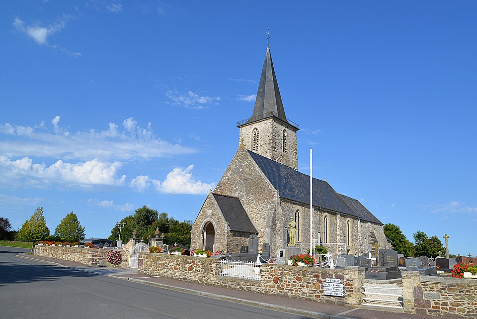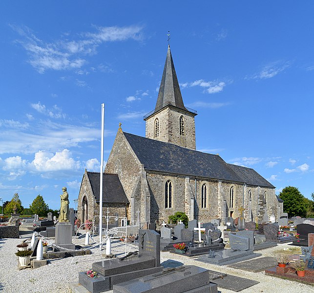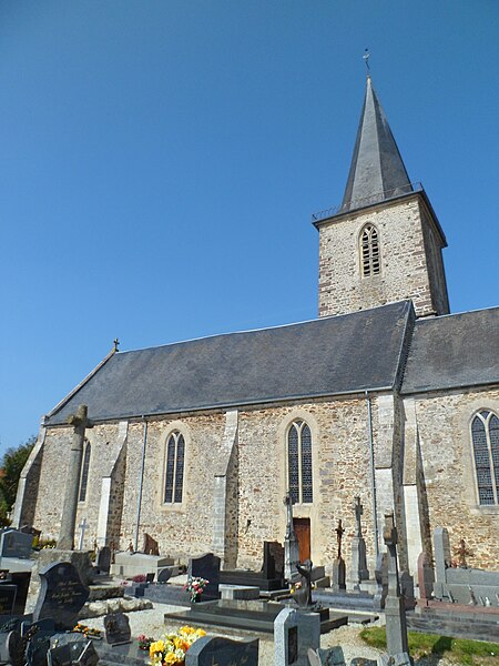 L'église Saint-Martin de Saint-Martin-de-Bonfossé, située dans le bourg de la commune de la Manche, est un édifice catholique inscrit aux monuments historiques. L'édifice conserve plusieurs vestiges médiévaux : le croisillon nord servant d'assise à la tour, l'arc triomphal et une petite fenêtre au-dessus de la porte latérale de la nef renvoient au XIIIe siècle, époque à laquelle sont également attribués le chœur et le clocher. Le chœur a néanmoins subi des remaniements signalés au XVIIIe siècle. Une chapelle latérale a été ajoutée au flanc gauche du chœur, mentionnée tantôt à la fin du XVe siècle, tantôt au XVIe siècle, et présente des bossages en poudingue pourpré. La nef a été voûtée au XIXe siècle. Le porche est rapporté comme datant du XVIe siècle dans une mention et du XVIIIe siècle dans une autre ; ce dernier conserve des peintures murales du XVIIe siècle. À l'intérieur, on remarque une épitaphe datée de 1611 commémorant Nicolas Ameline, curé de Saint-Martin, chapelain de la Motte-Lévêque et ancien aumônier de Jacques II de Matignon. L'église abrite un maître-autel à baldaquin — avec gradin, tabernacle, exposition, retable et sculptures, notamment une gloire, un ciborium et des statues de saint Martin et de saint Nicolas évêques — classé au titre des objets aux monuments historiques. On y trouve aussi un chapier du XVIIIe siècle, sept dalles funéraires dont celle de Jacqueline du Hamel (1595), ainsi qu'un monument aux morts décoré d'une pietà entourée d'aigles-lutrins. L'ensemble témoigne d'une histoire architecturale et mobilier riche, marquée par des apports et restaurations successifs.