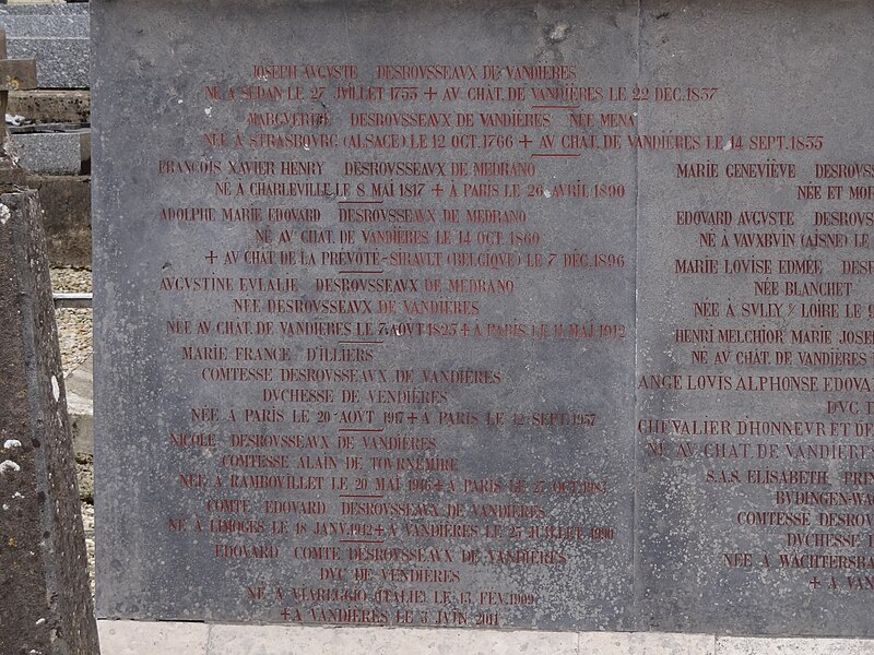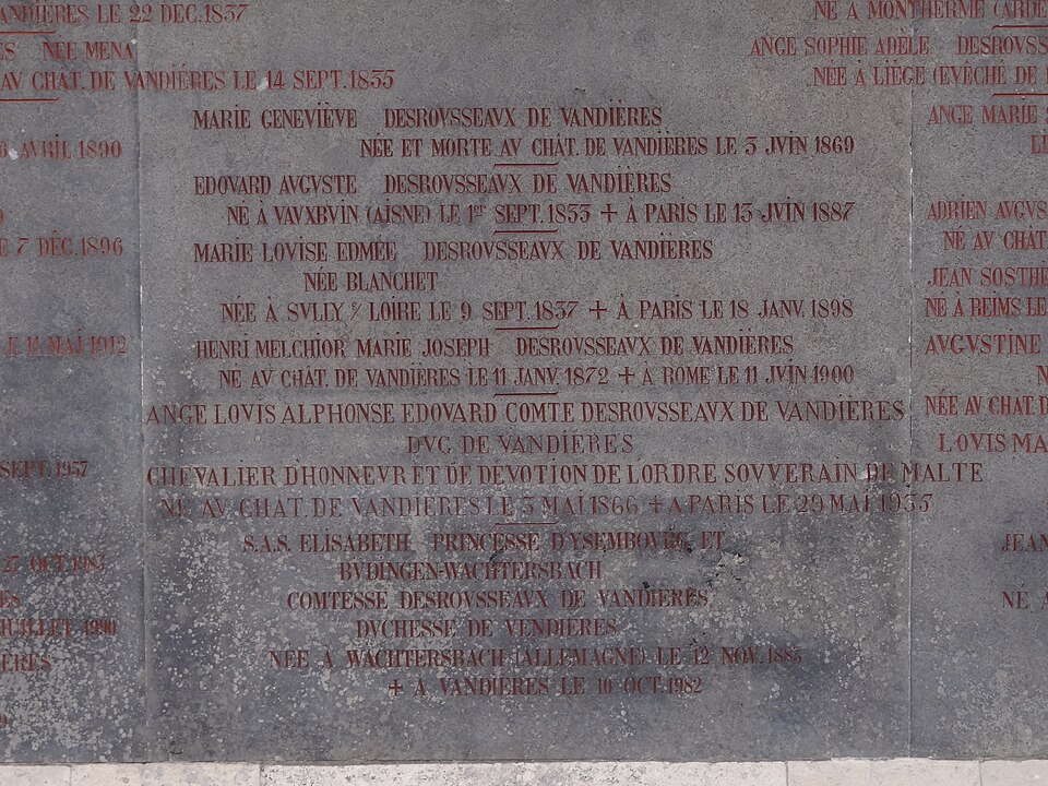 L’église Saint-Martin de Vandières, dans la Marne, est une église catholique paroissiale classée au titre des monuments historiques depuis 1921. Bâtie sur un plan en croix latine, elle présente un porche de type champenois et un chevet plat. La nef, couverte d’un plafond plat en bois, s’ouvre par quatre arcades reposant sur des piliers rectangulaires et ne possède qu’un collatéral, du côté sud. Le clocher est implanté sur la croisée du transept. L’édifice comprend notamment la nef, l’autel du transept nord, l’autel du transept sud et un vitrail représentant les saints Benoît et Jean. L’église est dédiée à saint Martin ; l’autel principal lui est consacré. Un tableau de la Vierge, daté de 1856, a été offert par M. Desrousseaux et réalisé par un de ses parents. Le dernier autel est consacré à sainte Barbe, patronne de Trotte ; cet autel a été refait en 1855 par le marquis de Narp, qui a également fermé la porte menant à la sacristie, porte surmontée d’une statue de saint Martin. Les bancs de la nef, d’une capacité de deux cent quarante places, sont affermés à chaque famille au profit de la fabrique paroissiale ; le banc sous l’arcade nord appartenait à la famille Desrousseaux-Ména, celui de l’arcade droite à la famille Petit, vendue à la famille de la Presle en 1791, et il existait aussi des bancs réservés aux marguilliers de la fabrique. Dans le cimetière reposent des soldats français de la Première Guerre mondiale et des soldats britanniques, dont des membres de l’Army Cyclist Corps. Plusieurs sépultures anciennes se trouvent dans l’église : Louis d’Alligret, seigneur de Vandières, écuyer, en 1680 ; Henry de la Barge en 1694 et sa femme Marguerite Guérin en 1707 ; Henri, écuyer et seigneur de Vandières, en 1709 ; Charles de Douart, seigneur de Vandières et marguillier, en 1757 ; enfin Louis Jacques Goudin de la Bory, chevalier et seigneur de Vandières, en 1776.