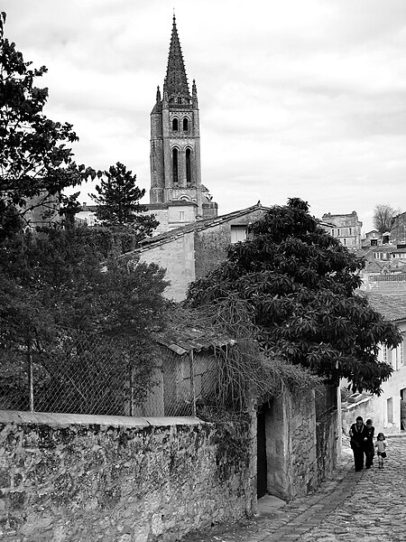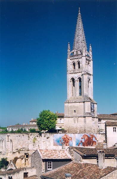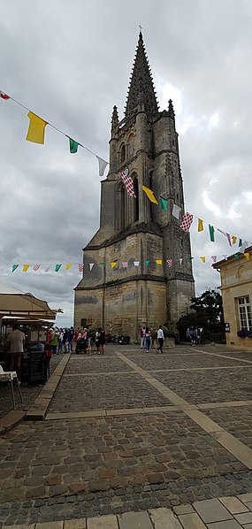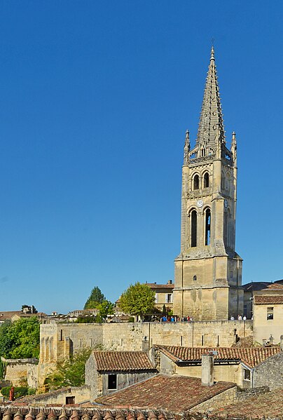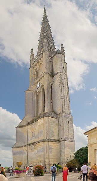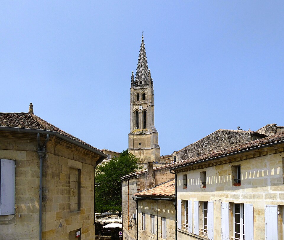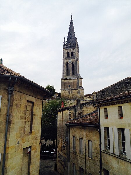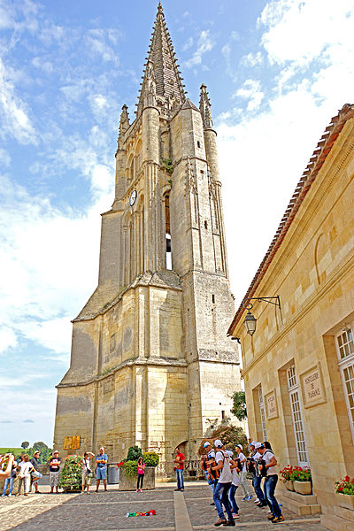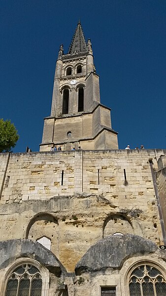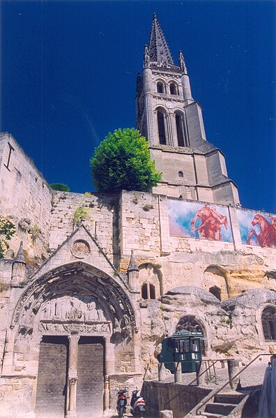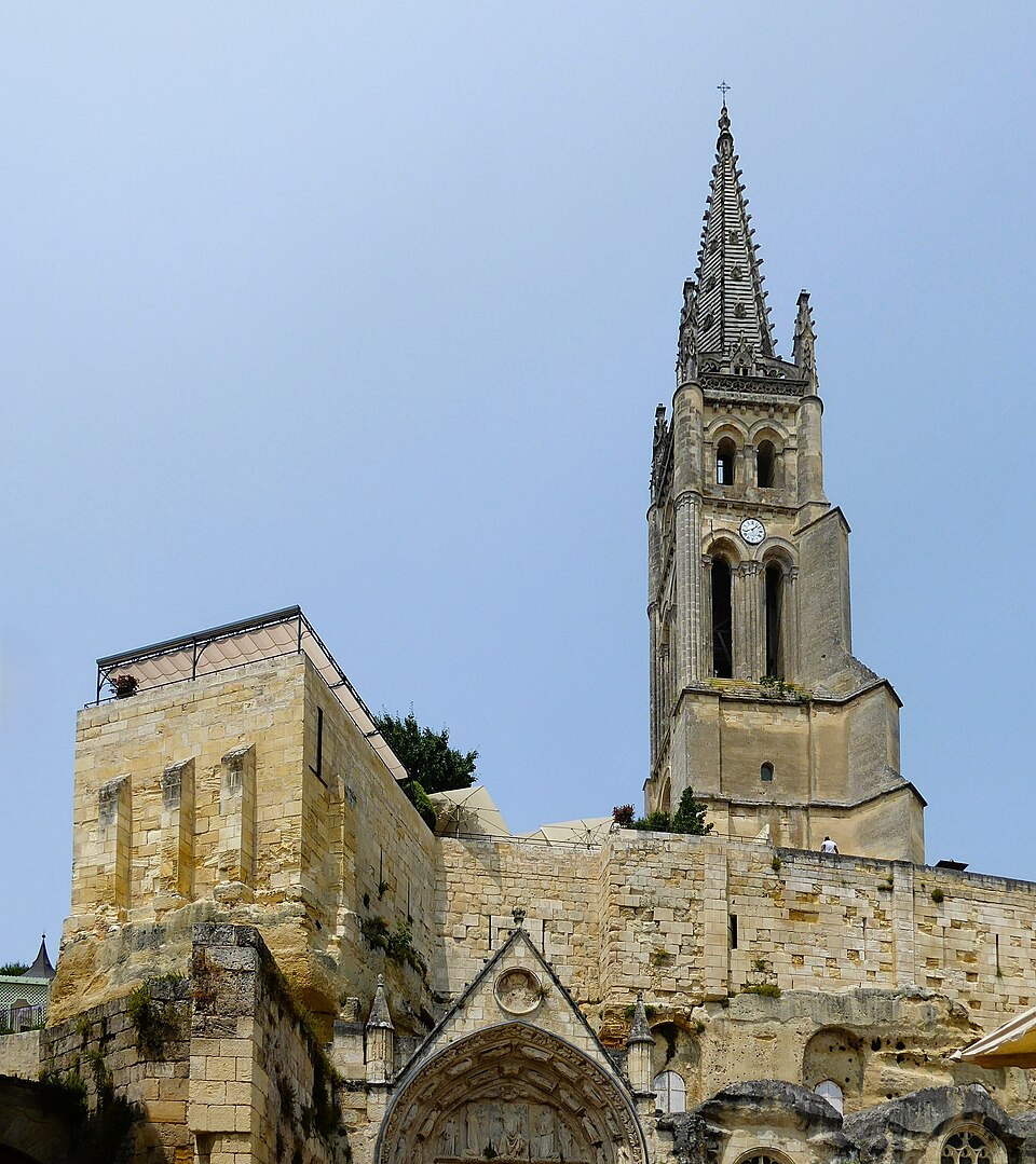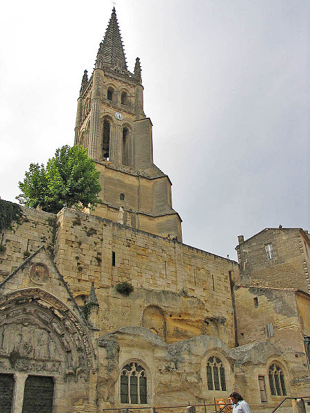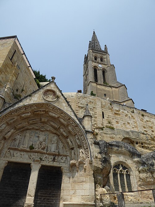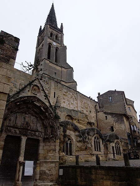 L'église monolithe de Saint-Émilion, entièrement creusée dans la roche, se situe sous la place des Créneaux et la place du Clocher, au centre historique de Saint-Émilion (Gironde). Datée de l'époque romane, elle est considérée comme la plus vaste église souterraine d'Europe. Creusée dans le flanc d'une colline, sa réalisation a nécessité l'extraction d'environ 15 000 m3 de roche, volume qui reste peu perceptible depuis l'extérieur. L'édifice n'est pas strictement orienté, sans doute en raison des contraintes imposées par son implantation. Il comprend une nef centrale et deux collatéraux de dimensions à peu près égales ; la nef centrale atteint onze mètres de hauteur. Six travées, séparées par de larges piliers monolithes, structurent l'espace intérieur. Le chœur présente des bas-reliefs sous la voûte, sur la face interne des piliers et sur le mur occidental ; des autels sont installés près de l'entrée principale, côté fenêtres. Des catacombes médiévales jouxtent la partie occidentale de la galerie d'accès. Le clocher, qui s'élève à 53 mètres, prend appui sur une tour établie au-dessus de l'église souterraine.