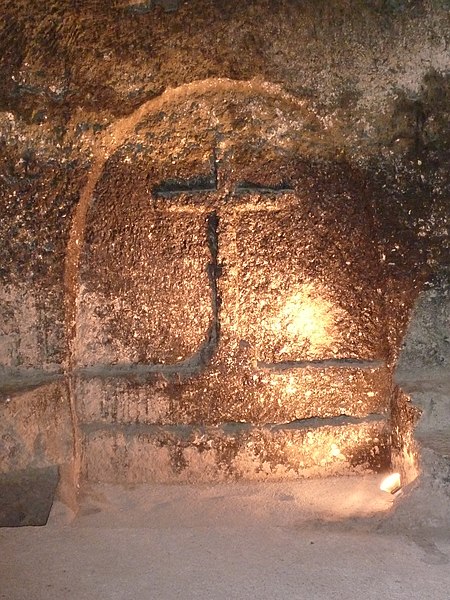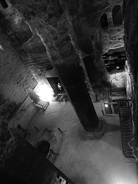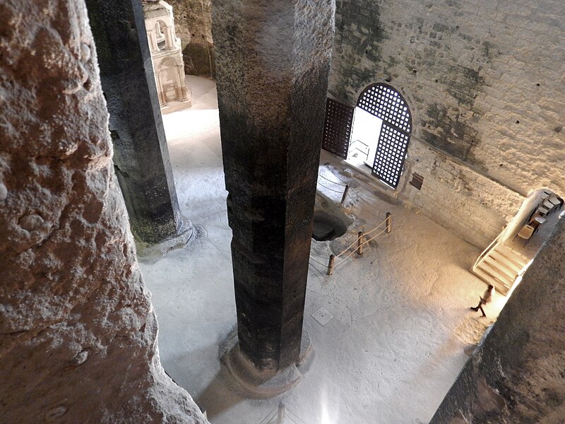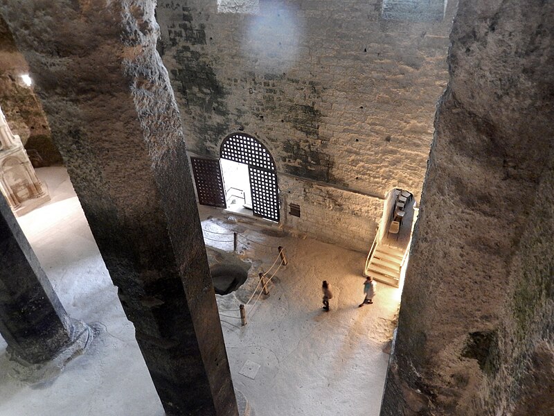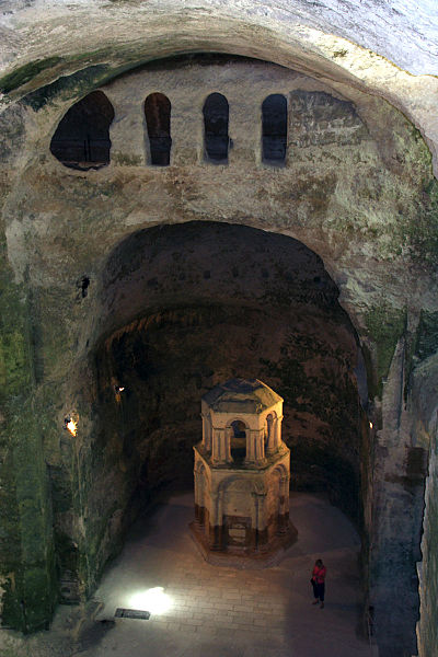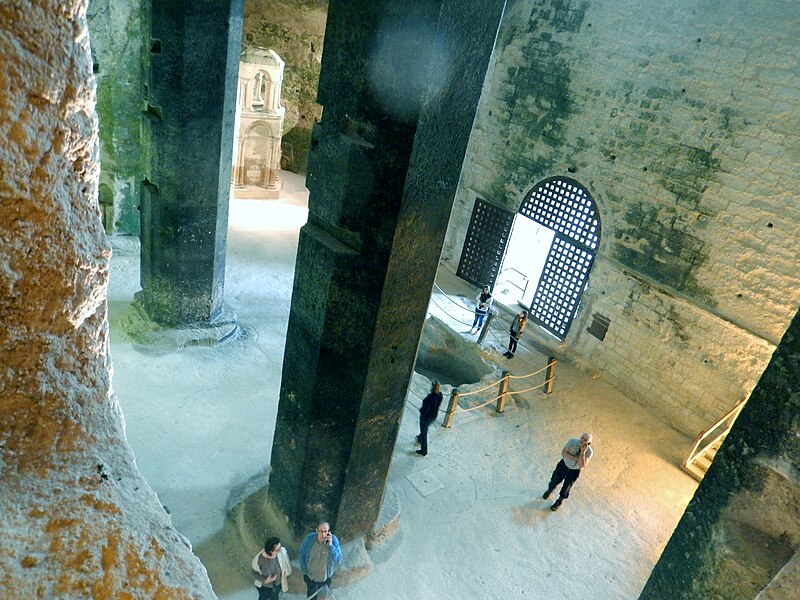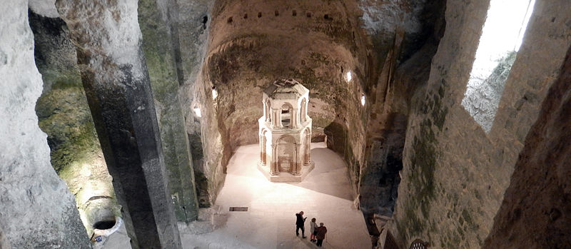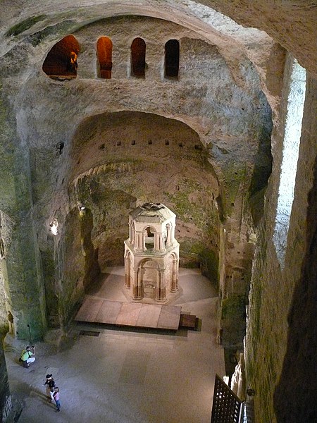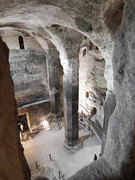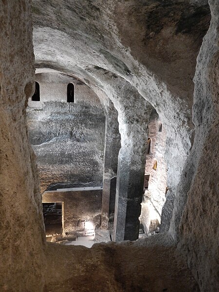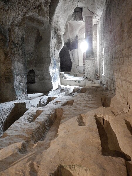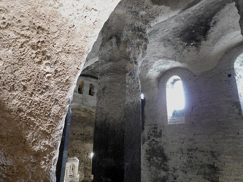 L’église souterraine monolithe Saint-Jean, située à Aubeterre-sur-Dronne dans le département de la Charente et le diocèse d’Angoulême, est creusée dans une falaise surplombant le village. La cavité primitive, agrandie dès le VIIIe siècle, conserve une piscine baptismale taillée dans le roc et ornée au fond d’une croix grecque. Au XIIe siècle, l’édifice fut considérablement agrandi par une communauté de moines bénédictins à l’initiative de Pierre de Castillon, vicomte d’Aubeterre, revenu de croisade et désireux d’y installer des reliques ; il conçut alors des memoriae inspirées du Saint-Sépulcre. Des ossements découverts au XIXe siècle dans des châsses de plomb ont confirmé la fonction reliquaire de la base et le niveau supérieur, ajouré, servait peut‑être à des ostentations. Les pierres extraites lors du creusement auraient servi à l’édification du château qui domine le site. De 1155 à la Révolution, l’église eut le statut de collégiale séculière et fut desservie par une communauté de chanoines financée par les revenus d’une dizaine d’églises alentour ; elle porta d’abord le nom de Saint-Sauveur avant de devenir dédiée à saint Jean pendant les guerres de Religion. L’implantation des bénédictins marque la période où l’édifice prit sa configuration actuelle et le sanctuaire fut réaménagé au XVIIe siècle, avec des reprises en maçonnerie sur certaines parois. L’église servit sans doute d’étape pour les pèlerins se rendant à Saint-Jacques et conserva le statut d’église paroissiale jusqu’en 1794, année où elle fut réquisitionnée comme fabrique de salpêtre, puis utilisée comme cimetière jusqu’à un arrêté de salubrité publique en 1865. Classée au titre des monuments historiques depuis le 3 septembre 1912, elle fit l’objet de travaux de déblaiement à partir de 1958, ce qui relança l’intérêt pour le site, et a connu une fréquentation touristique importante au XXIe siècle.