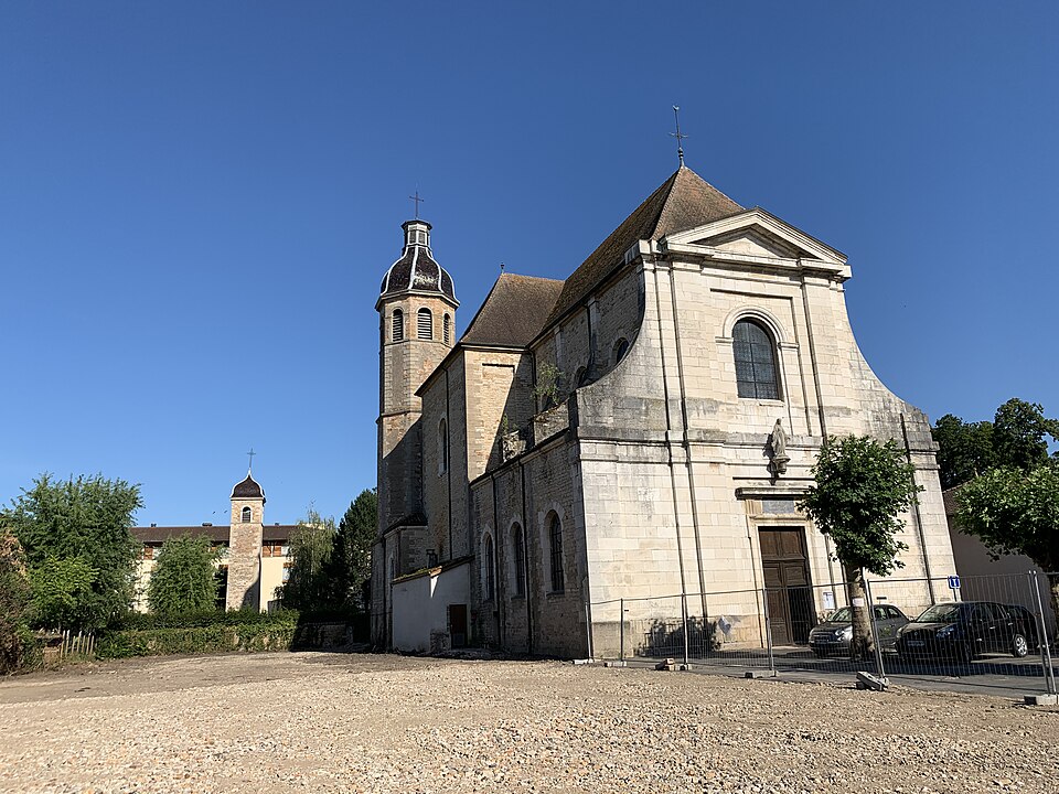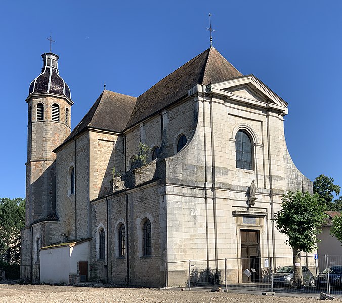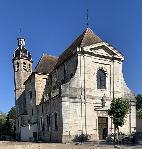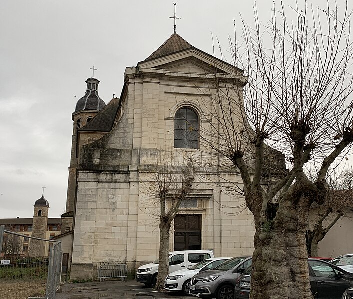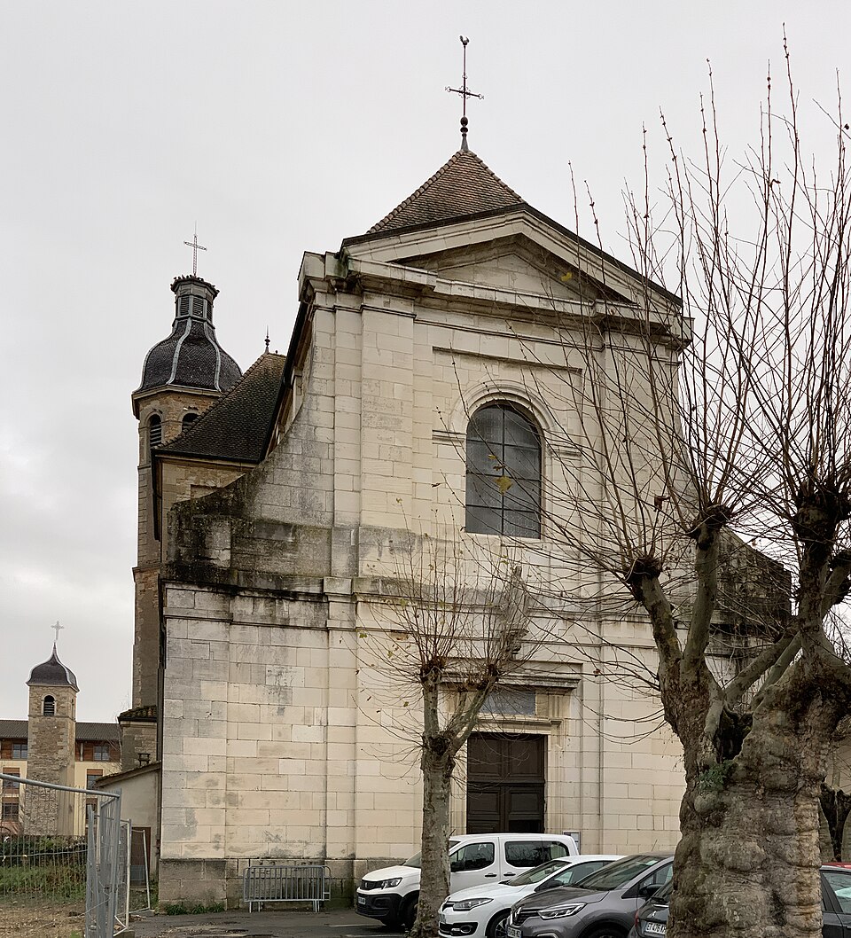 L'église Notre‑Dame se situe à Pont‑de‑Veyle (Ain, Auvergne‑Rhône‑Alpes) et est inscrite au titre des monuments historiques depuis le 9 avril 2008. La construction, engagée en 1747 et bénie en 1755, fut confiée aux Jésuites et aux catholiques de la ville — ce qui, selon les sources, contribua à réaffirmer leur suprématie sur les protestants — et mise en œuvre par l'architecte Le Jolivet; d'autres documents mentionnent le sieur Verne pour le devis et l'entrepreneur Caristia de Montluel pour l'exécution des travaux. De style classique dit « jésuite », l'édifice s'inspire de l'église du Gésu de Rome et présente une façade à deux niveaux couronnée d'un fronton triangulaire, au‑dessus de laquelle l'inscription latine Domus orationis est gravée en lettres d'or. Le plan en croix latine comprend une large nef de trois travées voûtées d'ogives bordée de trois chapelles, un transept surmonté d'une coupole à la croisée et un chœur formé d'une travée encadrée de chapelles latérales et d'une abside. Les peintures de la coupole, conservées, représentent les attributs du pouvoir de l'Église et l'Eucharistie. L'intérieur abrite un maître‑autel et une chaire en marbre polychrome qui proviendraient de l'abbaye d'Ainay. Dans la chapelle sud, une pierre tombale datée du 17 novembre 1768 porte une épitaphe latine en mémoire d'Antoine François de Borssat, conseiller au parlement de Dombes.