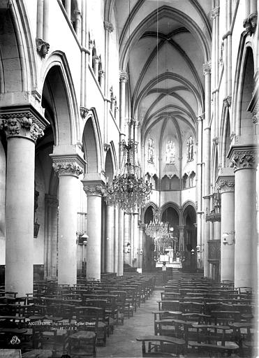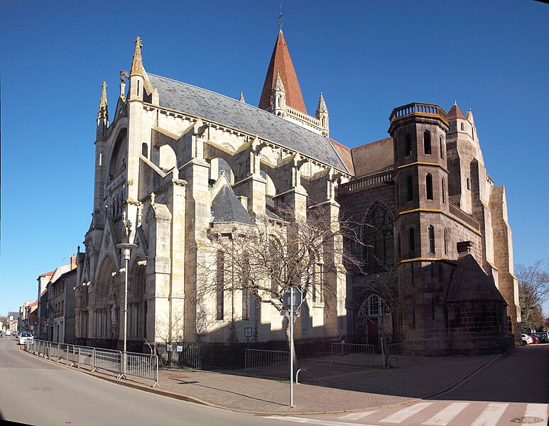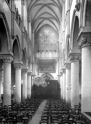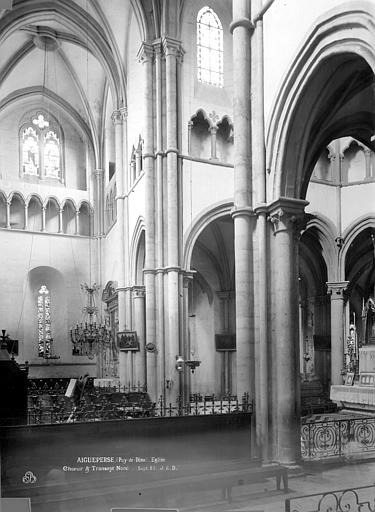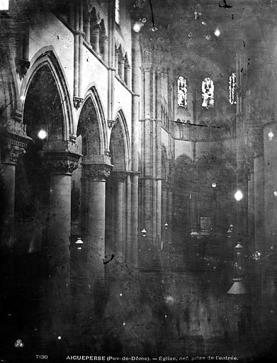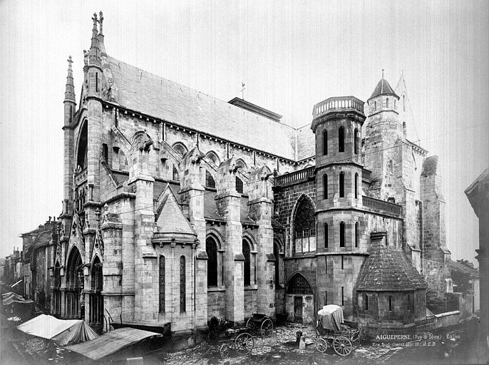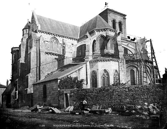 L'église Notre-Dame d'Aigueperse, ancienne collégiale du Puy-de-Dôme, doit son importance aux liens locaux avec la seigneurie de Montpensier, qui ont favorisé son embellissement. La première construction remonte à 1016, mais l'édifice a pris sa forme définitive à la fin du XIIe siècle lorsque furent élevés le chœur et le transept ; elle est considérée comme le premier édifice gothique bâti en Auvergne. En 1165, Agnès, héritière de la maison de Thiers, donna les terrains nécessaires à son agrandissement, et en 1253 l'église fut élevée au rang de collégiale. Plusieurs peintures murales datées du XIIIe siècle y sont conservées. Dans l'état actuel, les bras du transept et une partie des chapelles rayonnantes remontent au XIIIe siècle, tandis que la chapelle rayonnante abritant le tableau de Ghirlandaio et une construction accolée au coin sud du transept et de la nef datent du XVe siècle. La tour des Nesson, en pierre de Volvic, fut édifiée grâce aux libéralités de Barthélemy de Nesson, châtelain d'Aigueperse et père du poète Pierre de Nesson ; ce dernier fit élever pour sa famille une chapelle en 1415. Une autre chapelle rayonnante, au sud-est, appartient au XVIe siècle. L'ensemble de l'édifice a fait l'objet d'une restauration complète en 1865 ; la nef et la façade ont été reconstruites en 1880 pour remplacer une nef rebâtie en 1734 après son écroulement lors de la nuit du 23 au 24 février 1727, sinistre qui avait nécessité 19 000 livres. Un nouveau clocher, placé au nord du transept, a remplacé en 1902 le clocher détruit à la Révolution. L'église fait l'objet d'un classement au titre des monuments historiques depuis le 30 janvier 1922, après un premier classement en 1904 qui ne concernait que le portail du XIIIe siècle et un tombeau. Le mobilier comprend notamment la Nativité, une huile sur bois peinte en 1490 par Benedetto Ghirlandaio pour Gilbert de Bourbon, comte de Montpensier et dauphin d'Auvergne. De nombreuses peintures murales ornent l'intérieur : dans le chœur se trouvent des représentations de la Trinité, des douze prophètes et des douze apôtres, des quatre évangélistes avec leurs symboles, ainsi que des allégories de l'église et de la synagogue ; le transept sud offre, quant à lui, des scènes telles que le Christ montrant ses plaies, le Calvaire et le couronnement de la Vierge.