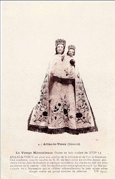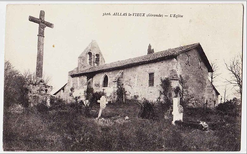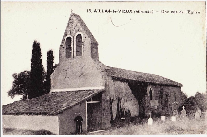 L'église Notre-Dame d'Aillas-le-Vieux est une église catholique située sur la commune de Sigalens, en Gironde. Elle se trouve au lieu-dit Aillas-le-Vieux, au nord-nord-est du bourg de Sigalens, à environ 2,5 km par la route ; on y accède en empruntant la départementale D124 jusqu'au lieu-dit La Basse-Cour (1,9 km), puis une route vicinale vers l'est sur 600 m. L'édifice, daté du XIIe siècle, est inscrit au titre des monuments historiques par arrêté du 2 juillet 1987 pour ses façades et ses toitures. Des photographies de décembre 2009 montrent des vues ouest et sud du porche et du clocher-pignon ainsi que le chevet au nord-est. Pour plus d'informations, on peut consulter la liste des monuments historiques de la Gironde, la page consacrée à Sigalens et des ressources en ligne telles que Clochers de France, la base Mérimée ou les portails dédiés à l'architecture chrétienne, aux monuments historiques et à la Gironde.