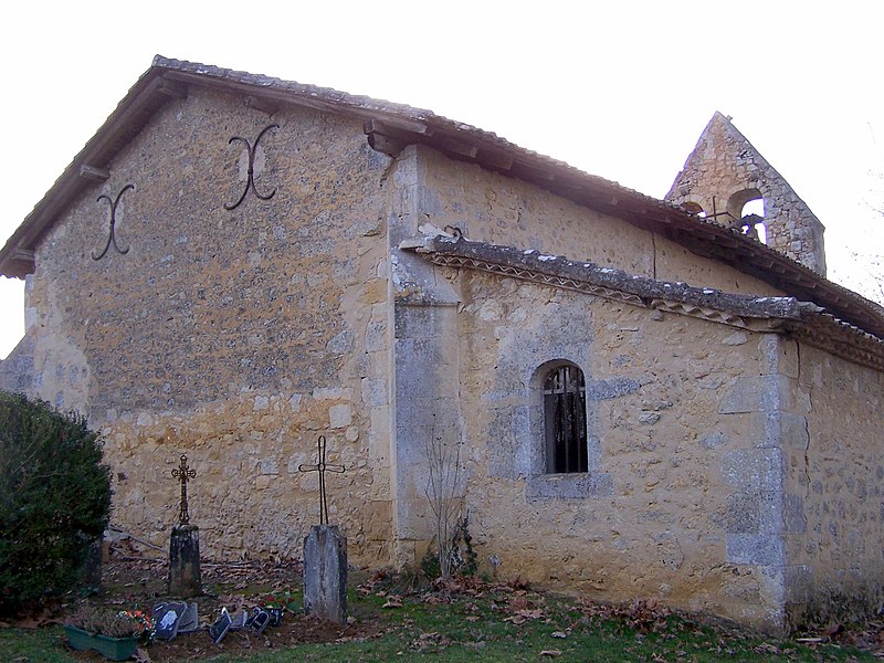 Édification de l'église Notre-Dame d'Aillas-le-Vieux.