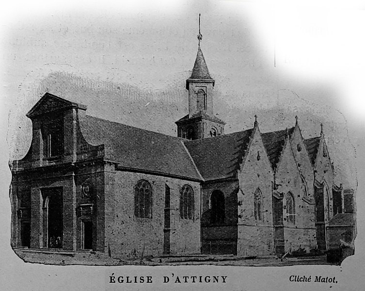 L'église Notre-Dame se situe à Attigny, dans le département des Ardennes, en France. Sa tour, qui fait office de clocher et présente des baies géminées, relève du style roman bien qu'elle ait été partiellement reconstruite après la Première Guerre mondiale. La nef et le chœur sont de style gothique. Des vues anciennes et contemporaines montrent l'édifice sous différents angles : une vue avant la Grande Guerre, le côté, des détails, l'intérieur et la tour-clocher.