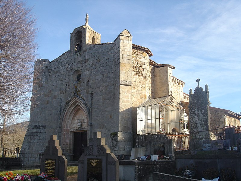L'église Notre‑Dame d'Espinasse, située à Aubusson‑d'Auvergne dans le Puy‑de‑Dôme, présente des origines romanes et a été rebâtie au XVe siècle dans le style du gothique méridional. Orientée et voûtée d'ogives, elle se compose d'une nef à deux travées séparées par un arc-doubleau et d'un chœur plus étroit qui se termine par une abside polygonale à trois pans, séparé de la nef par un arc diaphragme. La première travée, de plan carré, soutenait autrefois un clocher ; elle est épaulée par quatre puissants contreforts. Contre le contrefort sud‑ouest subsiste une tourelle polygonale hors‑œuvre abritant l'escalier en vis qui montait au clocher. La façade ouest s'ouvre sur un portail central à arc brisé composé de trois voussures à ressauts reposant sur des bases prismatiques et un soubassement ; les colonnettes engagées des jambages sont formées d'un tore souligné d'un listel et des coussièges intégrés au soubassement flanquent la porte à deux vantaux. Une plate‑bande moulurée en tore chargé d'un filet aux angles amortis surmonte le portail et un tympan aveugle porte un buste rapporté du Christ ; un oculus à remplage flamboyant couronne l'ensemble. À l'intérieur, les ogives du chœur forment des quartiers rayonnants dont la clef de voûte quadrilobée est ornée d'un écu ; les nervures retombent sur des colonnettes engagées aux angles de la partie droite du chœur, au moyen de chapiteaux prismatiques ou décorés de feuillages. Le cimetière communal, accolé à l'édifice, et une petite source située en contrebas, réputée pour traiter les affections dermatologiques, constituent avec l'église un ensemble cohérent qui a donné naissance à un petit lieu de pèlerinage local dédié à la Vierge-Marie. L'origine du site remonterait peut‑être à une période païenne en raison de la source, et selon la tradition un ermite aurait choisi ce lieu au VIIe ou VIIIe siècle pour y établir un oratoire, où la Vierge lui serait apparue. L'édifice est inscrit au titre des monuments historiques en 1985.