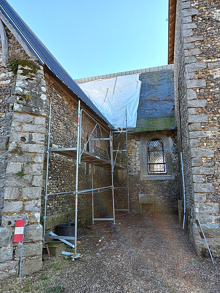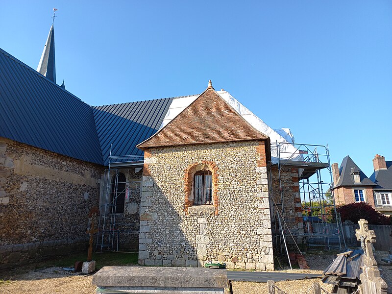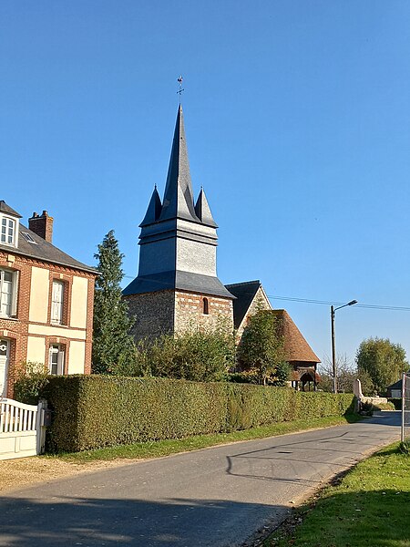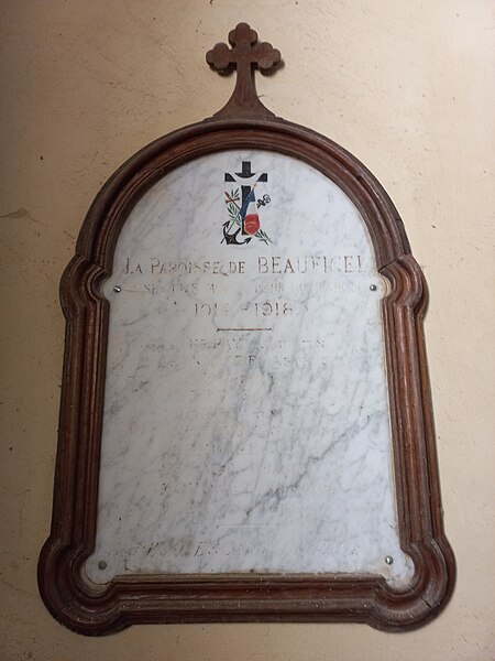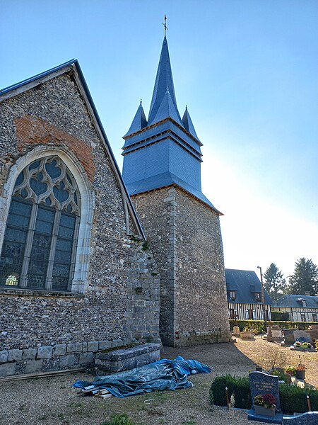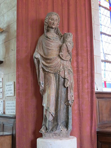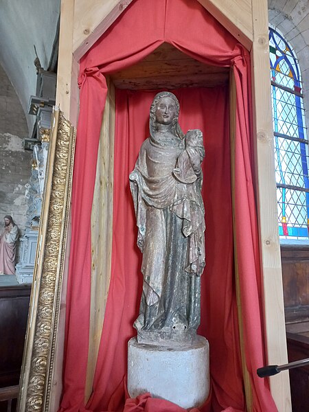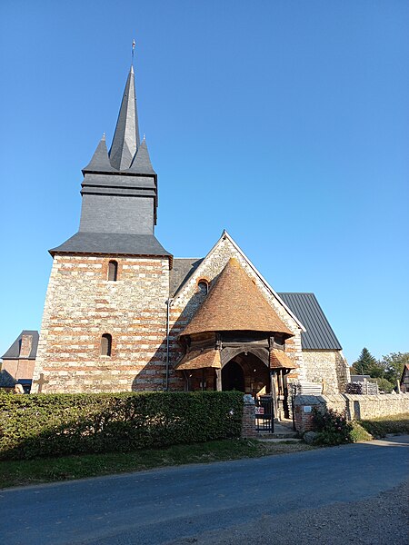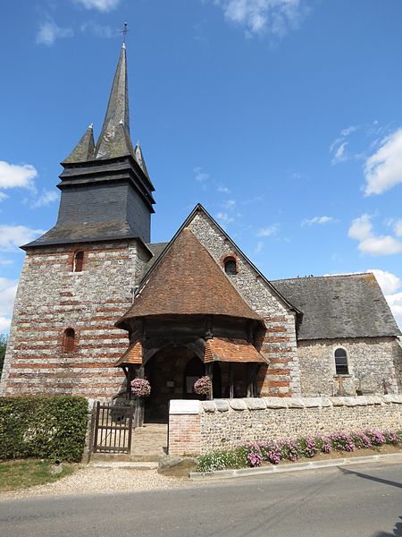 L'église Notre-Dame de Beauficel-en-Lyons se situe dans l'Eure, en France. Jean de France, duc de Normandie à titre honorifique et futur roi, revendiqua en 1343 le patronage de l'église, en opposition à l'archevêque de Rouen. En 1382, le Parlement de Paris statua que le patron serait alternativement le roi et l'archevêque de Rouen. L'édifice occupe son enclos paroissial, au milieu du cimetière, et présente un plan cruciforme orienté. À l'ouest, un porche pentagonal en bois sculpté daté de 1570 est classé monument historique. Le clocher, grosse tour carrée du XVIe siècle située au nord de la nef, est percé d'un parement en damier de pierre et de silex et couronné d'une charpente à flèche octogonale dotée de quatre clochetons. Le chevet se termine par une abside à trois pans et la sacristie se trouve au sud. L'intérieur conserve une Vierge à l'Enfant du XIVe siècle, également classée monument historique ; elle fut dorée en 1732 pour la somme de 20 livres. Selon le docteur Dollfus, la statue était exposée au revers de la façade ouest avant sa restauration en 1949, et sa décapitation daterait de la Révolution. Le porche a été classé par arrêté le 20 avril 1925 et l'église a été inscrite par arrêté le 19 mars 1940.