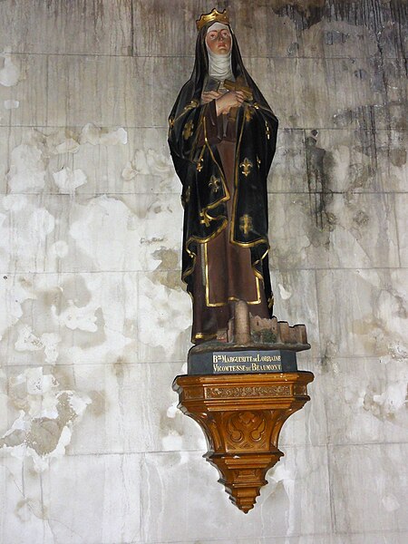 L'église Notre-Dame se trouve au centre du bourg de Beaumont-sur-Sarthe, dans le département de la Sarthe. La porte romane de la façade sud, partie la plus ancienne de l'édifice, est inscrite au titre des monuments historiques depuis le 6 janvier 1926. Le bas-côté nord date du XVIᵉ siècle et, au XVIIᵉ siècle, l'orientation de l'église a été modifiée pour permettre l'agrandissement du chœur. L'édifice présente une double nef ; la porte romane, sculptée de motifs en dents de scie et de masques, est aujourd'hui murée et une petite porte y a été percée. La façade principale est ornée de trois statues. À l'intérieur, la nef et le bas-côté nord conduisent au chœur, qui conserve le maître-autel et son retable inscrit. Plusieurs éléments du mobilier sont classés ou inscrits dans la base Palissy, parmi lesquels le retable du maître-autel, deux tableaux, un lutrin, les fonts baptismaux, deux bénitiers et une série de sculptures. Parmi ces sculptures figurent une Vierge à l'Enfant, L'Assomption de la Vierge, saint Rémi, saint Avertin, une Vierge de Pitié, saint Michel terrassant le dragon, saint Louis roi et une Vierge du rosaire en bas-relief.