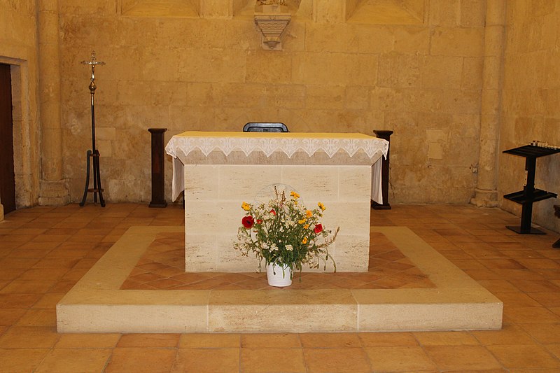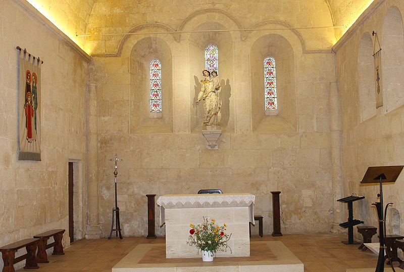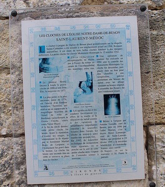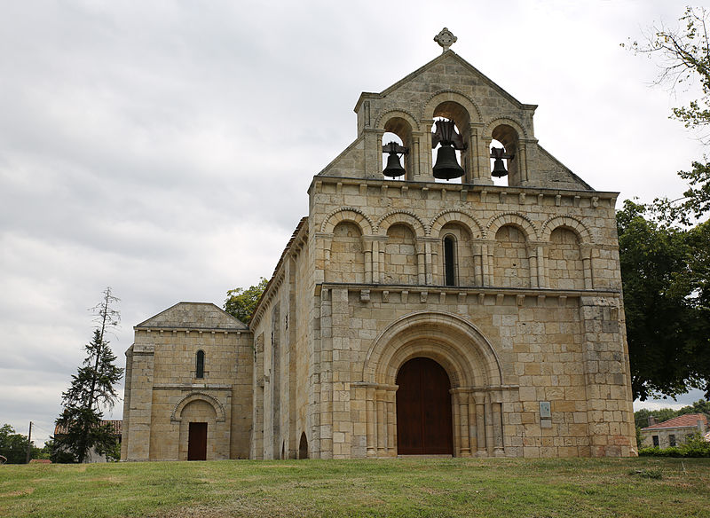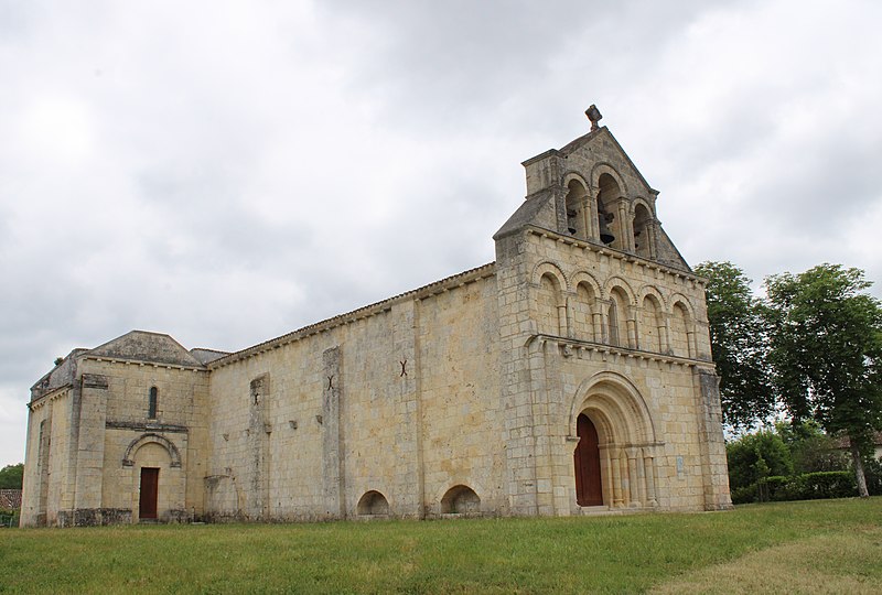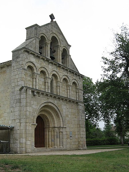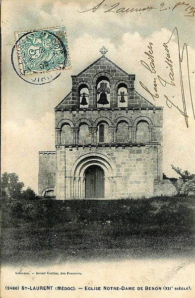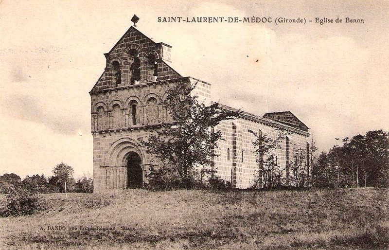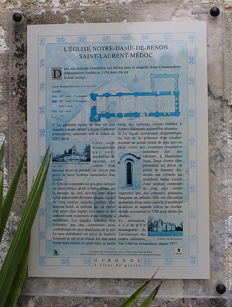La fondation de l'hôpital de Benon semble liée au souvenir de la deuxième croisade, à laquelle avait pris part le seigneur de Lamarque, en Médoc. En mémoire de ce croisé, son fils, de passage sur le chemin de Compostelle en 1154, donna ou confirma une donation plus ancienne aux chevaliers de Saint‑Jean de Jérusalem pour le salut de l'âme de son père. L'hôpital et sa première église datent donc, au plus tard, de la seconde moitié du XIIe siècle. Benon fut le chef‑lieu d'une commanderie qui se développa jusqu'au XIVe siècle. La première église, qui correspond à l'actuelle sacristie et était trop exigüe, fut complétée par une seconde église construite semble‑t‑il vers 1200, composée d'une nef rectangulaire voûtée en cinq travées et d'un chevet plat. Le porche présente trois arcs en plein cintre dont les voussures moulurées retombent sur des colonnes à chapiteaux lisses; au‑dessus, une corniche à modillons porte une arcature de cinq arcs cintrés soutenus par des colonnes géminées flanquant un pilastre, elle‑même surmontée d'une autre corniche à modillons. Un pignon triangulaire ajouté en 1768 couronne l'ensemble.
