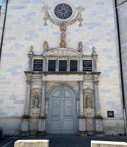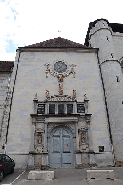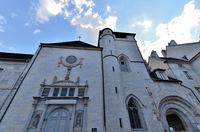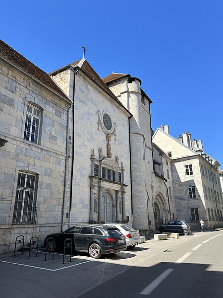 La tour des cloches, édifiée au XVIe siècle, fut pendant un temps la plus haute de la ville ; à proximité, Antoine de Montécut fit également ériger une chapelle dédiée à Notre‑Dame des Douleurs. À gauche de la façade s'ouvre la porte d'accès au cloître et aux bâtiments conventuels, reconstruits au XVIIe siècle et aujourd'hui occupés par des bureaux, des salles de cours et la bibliothèque de l'Université de Besançon. La grande nef fut voûtée en 1720 et une abside ajoutée au fond du chœur la même année. La tour et le portail sont inscrits au titre des monuments historiques depuis le 8 juin 1926.