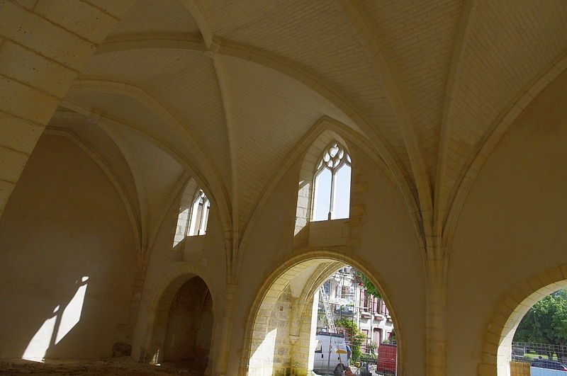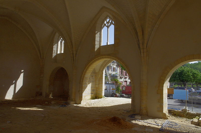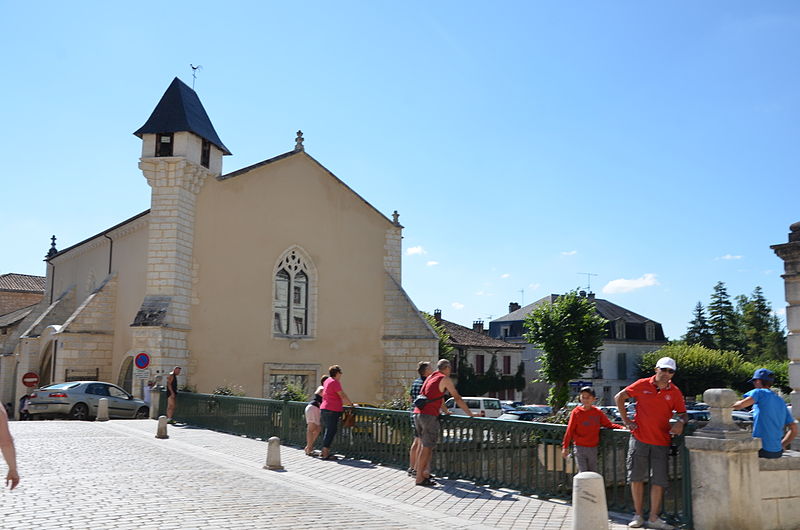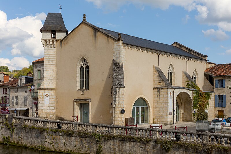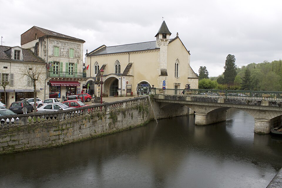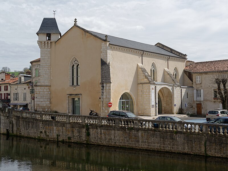 L'ancienne église Notre‑Dame a été édifiée en 1516 par Amanieu d'Albret, cardinal et abbé de Brantôme, frère du roi de Navarre, sur l'emplacement d'une chapelle. Sa construction correspond à la création d'une seconde paroisse pour la ville de Brantôme et ses environs, la première étant Saint‑Pardoux‑de‑Feix. L'édifice présente une nef unique avec des chapelles latérales aménagées entre les contreforts et des voûtes en croisée d'ogives ; un clocher en échauguette s'élève à l'angle jouxtant le pont. Au milieu du XVIIe siècle, quatre chapelles furent établies entre les contreforts ; l'une d'elles porte la date 1653 sur sa clé de voûte. L'église a assuré le service paroissial jusqu'au 30 décembre 1858, date à laquelle l'église abbatiale devint la nouvelle paroissiale. Transformée en halles au milieu du XIXe siècle, l'édifice vit ses chapelles ouvertes de chaque côté, connut un temps d'abandon puis d'autres affectations ; dans les années 1960 il fut aménagé en salle des fêtes. Des sondages récents ont montré que le cimetière se développait au sud de l'édifice.