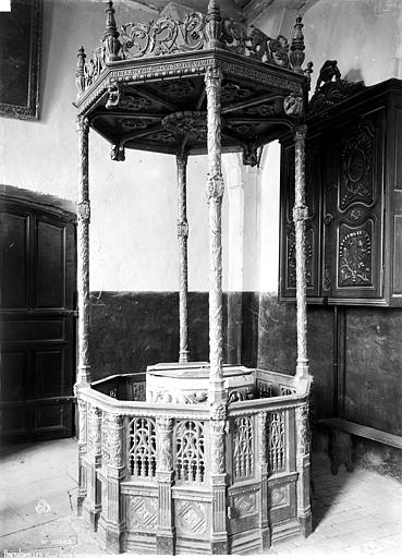 Baldaquin ajouté au-dessus des fonts baptismaux.