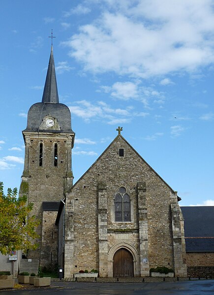 L’autel actuellement en place, rapproché de l’arc d’accès à la croisée du transept conformément aux prescriptions de Vatican II, comprend une pierre provenant de la chapelle de La Coutardière ; une sépulture liée à cette famille est signalée dans l’église en 1605. Au fond du chœur, un autel‑retable du XVIIIe siècle, richement travaillé, associe éléments classiques et baroques ; le tableau central représentant l’Assomption est signé Jean‑Baptiste Thonnesse et daté de 1825, et l’ensemble a fait l’objet d’études de restauration. Les marbres proviennent de carrières mayennaises et les colonnes alternent ordres ionique et corinthien ; les décors en relief représentent notamment le blé et la vigne. Des travaux de restauration de la toiture de la croisée de transept et de l’abside ont été conduits avec des aides régionales, nationales et d’associations de sauvegarde du patrimoine.