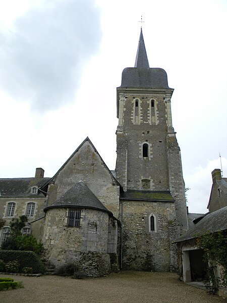 Les archives mentionnent Notre‑Dame dans le cartulaire de l’abbaye Saint‑Serge d’Angers, où figure la donation faite par Guischard Charpi en 1162 ; cette donation est liée à la fondation d’un prieuré qui subsistera jusqu’à la Révolution. Des auteurs anciens et des chroniqueurs médiévaux évoquent en outre une église en pierres sur ce site dès le IXe siècle, refuge lors de la bataille de Brissarthe rapportée par Réginon de Prüm, et plusieurs pierres sculptées réemployées dans l’arc principal semblent provenir de cet édifice primitif.