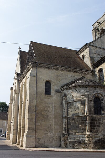 L'église Notre-Dame de Bruyères-et-Montbérault, dans l'Aisne, présente l'un des plus beaux chevets romans du nord de la France. La majeure partie de l'édifice remonte au XIIe siècle : la nef, les bas-côtés, le chœur, le transept est et le chevet, qui comprend une abside centrale et deux absidioles voûtées en cul-de-four richement décorées à l'extérieur. Le transept ouest a été édifié au XIIIe siècle et des modifications de voûtes et d'ouvertures ont été apportées au XVe siècle. Un édifice est attesté dès 630 et, au début du XIe siècle, des travaux d'agrandissement furent entrepris ; la bénédiction a eu lieu en 1083. L'église fut le siège d'un doyenné de l'évêché de Laon regroupant vingt-quatre paroisses et sept annexes, dissous en 1801, et conservait autrefois les reliques de plusieurs saints, dont Caprais, Léon, Félix, Thimothée, Armantuis, Féliassime et Pérégrinus. L'édifice a souffert des guerres de religion (1567 et 1587), a été transformé en écurie pendant la Révolution, a vu le passage des armées russes en 1814 et a servi d'ambulance allemande lors de la Première Guerre mondiale. Classée au titre des monuments historiques en 1922, l'église se caractérise par un clocher fortifié désaxé, daté du XIIIe siècle, construit au-dessus du transept nord. Le chevet roman, l'abside centrale et les absidioles en cul-de-four présentent des décors extérieurs remarquables. La nef, à six travées, conserve ses bas-côtés du XIIe siècle ; la façade occidentale s'ouvre par un ensemble de vitraux et, à l'intérieur, une grande tribune abrite un harmonium. Devant le chœur se trouve une chaire en bois, et les restaurations ont permis la mise au jour et la conservation de peintures murales. Le mobilier comprend des fonts baptismaux en pierre du XVIIIe siècle, aujourd'hui très abîmés, plusieurs statues — dont une Vierge et un Jean du XVIIe siècle — et une Vierge du Magnificat attribuée à Jean Jouvenet. La polychromie du portail, les sculptures extérieures, la nef, le transept nord et les peintures murales figurent parmi les éléments les plus remarquables. La liste des doyens connus, non exhaustive, illustre la continuité paroissiale du XIe au XXe siècle ; on y trouve notamment Anguilbert (1081), Dei-Amicus (1195), Jean de Beautor (1350), Mathieu Dupont (1517) et Louis Mary (1929). Des études et des publications spécialisées font état des peintures murales et des caractéristiques architecturales de l'église.