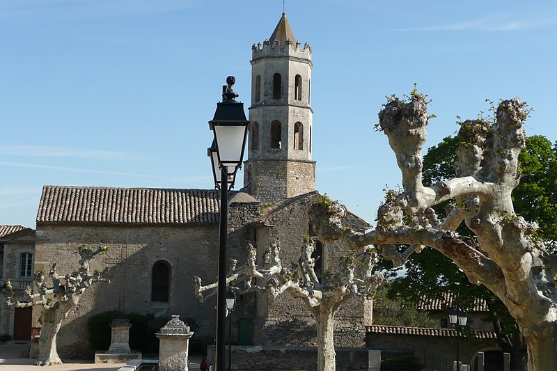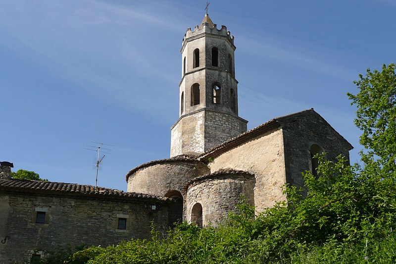 La première mention de l'église remonte à 1265. La chapelle nord, correspondant au bras nord du transept, constitue le noyau ancien et est antérieure à 1424, date de la fondation du prieuré de l'Ermitage de Notre-Dame de Carsan par le sénéchal de Beaucaire. Le chœur actuel et la nef ont été bâtis au début du XVe siècle; la nef a fait l'objet d'une réfection en 1714. Le prieuré fut ruiné en 1650 par les guerres de Religion. En 1863, le curé fit orner l'église de peintures murales, ouvrir des fenêtres dans l'abside et faire construire un clocher du XIXe siècle imitant la tour Fenestrelle d'Uzès. L'édifice est de style roman et présente un plan cruciforme orienté, avec une abside principale et deux absidioles voûtées en cul-de-four. Une coupole couvre la croisée du transept et un clocheton ancien se situe au sud du transept.
