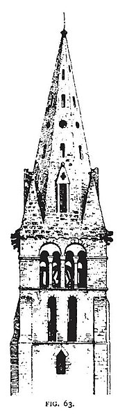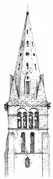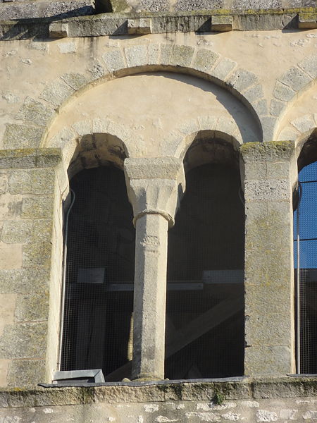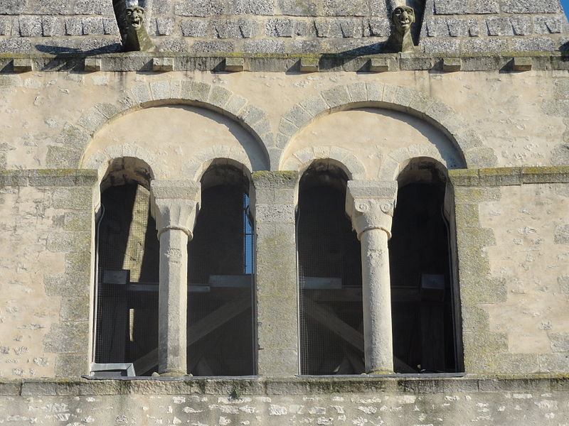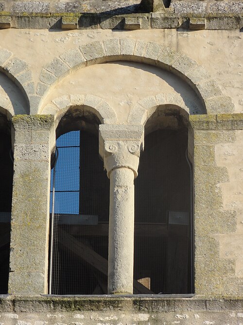 La base du clocher conserve des éléments romans authentiques : arcades en tiers‑point, chapiteaux sculptés et une voûte d'arêtes qui figure parmi les rares exemples romans subsistants dans la région; une petite fenêtre latérale en plein cintre, aujourd'hui bouchée, est un autre témoignage de cette phase. La chapelle de la Vierge se distingue par un décor peint troubadour abondant, la présence du monument funéraire de Christine‑Éléonore Boyer transféré en 1857 et décoré sur proposition de Viollet‑le‑Duc à la demande de l'empereur, ainsi que par une tourelle d'escalier cylindrique et des voûtes d'ogives de style XVIe siècle.