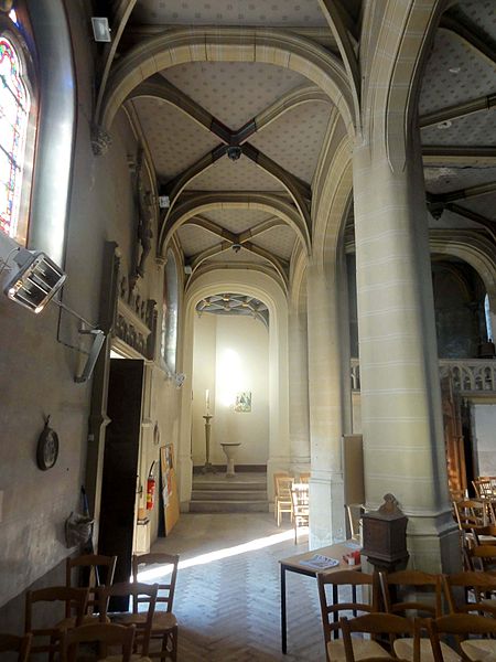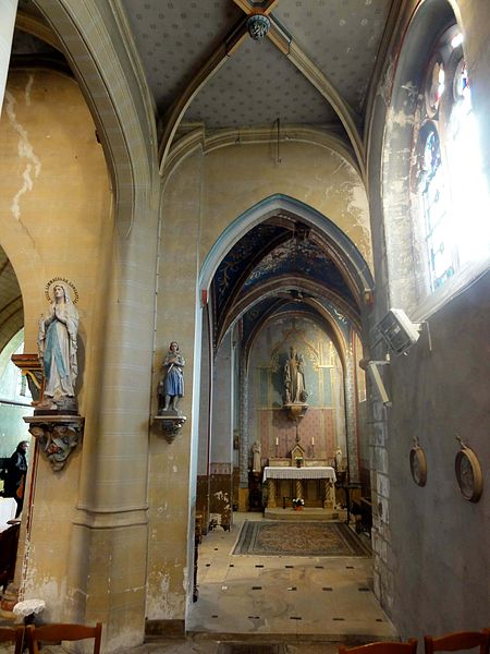 L'intérieur montre des grandes arcades en anse de panier aux moulures prismatiques, reposant sur des piliers ondulés à renflements qui s'inscrivent dans l'esprit flamboyant régional, mais l'aspect plaqué des voûtes et le profil de certains arcs renvoient à l'intervention du XIXe siècle. Les élévations latérales se caractérisent par un soubassement élevé et des baies trapues dont le remplage, surtout dans le chœur, relève du style rayonnant tardif avec lancettes, oculi et pentalobes.