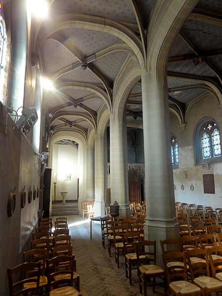 Une importante restauration financée par Napoléon III et menée par l'architecte‑décorateur Philippe Bruslé eut lieu entre 1863 et 1877; elle a instauré un voûtement néogothique et une décoration intérieure de style troubadour, remplacé le plafond lambrissé signalé antérieurement et ajouté des éléments comme la chapelle baptismale et la tribune occidentale. Les seules parties de la nef et du collatéral authentiquement gothiques flamboyantes sont, selon les auteurs, les grandes arcades et le portail méridional, ce dernier conservant ses vantaux en chêne d'origine, classés objets historiques depuis 1912.