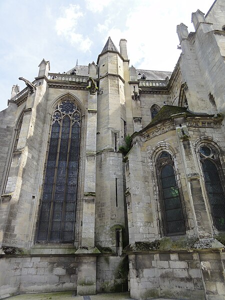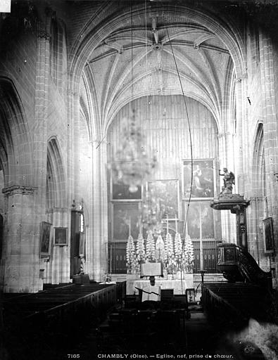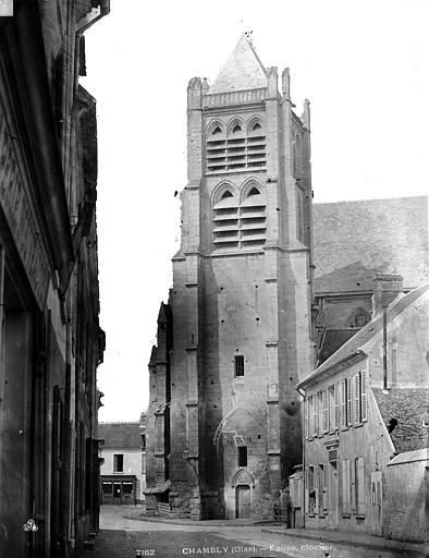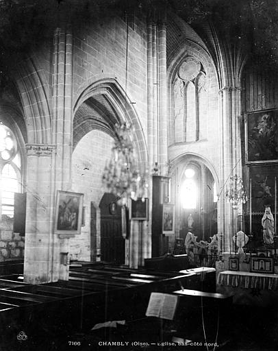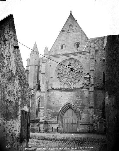 L'église Notre‑Dame de Chambly, située au cœur de la ville dans l'Oise, est une paroisse catholique d'architecture gothique rayonnante. Selon la tradition locale, saint Louis aurait donné l'impulsion à sa construction, mais l'analyse du bâti exclut aujourd'hui une attribution certaine. Les observations stylistiques permettent de retenir que le chantier a débuté vers 1260 par le chœur et s'est achevé par le transept et la nef dans les années 1270‑1280. Le chœur et ses chapelles affichent un parti conservateur du plein style rayonnant, tandis que le transept et la nef montrent un rayonnant tardif, et l'ensemble se signale par son homogénéité et la cohérence du plan. L'édifice, long d'environ 53 mètres et large de 20 mètres, se distingue par la clarté de sa conception, l'élégance sévère de ses proportions et la multiplication de fins fûts entre les fenêtres de l'abside. Le plan est cruciforme : une nef de quatre travées avec bas‑côtés, un transept non saillant, un chœur de trois travées terminé par une abside à cinq pans, deux chapelles orientées et un clocher implanté au sud. L'élévation de la nef se caractérise par deux niveaux (grandes arcades et fenêtres hautes) sans triforium, alors que le chœur et l'abside présentent des fenêtres très hautes sur un seul niveau. La croisée du transept porte une voûte à liernes et tiercerons, technique qui, remarquée ici, apparaît en France à la fin du XIIIe siècle. Une chapelle latérale, voûtée au XVIe siècle, a été ajoutée au droit de la troisième travée du bas‑côté nord ; elle a successivement porté les dédicaces de Notre‑Dame de Pitié, de la Vierge puis du Saint‑Sacrement. L'église a subi de nombreuses campagnes de réparations entre le XVIe et le XVIIIe siècle ; en 1781 elle fut interdite au culte en raison de son mauvais état et le service fut alors transféré au prieuré Saint‑Aubin. Les travaux entrepris ont permis la réouverture au culte en 1785 après des reprises des voûtes, la reconstruction d'arcs‑boutants et le relevage des toitures des bas‑côtés. La question des cloches apparaît complexe dans les sources : certaines campagnes les signalent descendues pour fonte en 1742, tandis que d'autres mentionnent des remises en place au cours de la période révolutionnaire. Au XIXe siècle, la dégradation du chœur conduisit à de vastes restaurations ; l'église fut classée au titre des monuments historiques par la liste de 1862 puis restaurée par plusieurs architectes entre 1867 et 1928. Les travaux du dernier tiers du XIXe siècle ont notamment porté sur la reconstruction partielle de l'abside, la remise en place des voûtes et toitures, le remplage des fenêtres et le remplacement des vitraux de l'abside. Une seconde campagne, engagée à partir de 1928, fut consacrée principalement à la nef, au transept et au clocher. L'abbé Jean‑Baptiste Thierry, curé de 1740 à 1754, a laissé un journal qui éclaire la vie paroissiale et les travaux de son temps : il fit bâtir un nouveau presbytère, installer des cloches et réaménager l'église, tout en conduisant des démarches pour recouvrer les contributions des décimateurs pour l'entretien des chapelles. L'intérieur conserve un mobilier varié et protégé pour certains éléments : l'orgue de tribune et la chaire à prêcher sont remarquables et protégés, le buffet de l'orgue et la partie instrumentale font l'objet de classements. L'inscription signalant un orgue «fait par Henry… en 1508» est mentionnée dans les sources, mais sa lecture et la datation de l'instrument ont été discutées ; l'orgue a connu de nombreuses réparations. La chaire, de la fin du XVIIIe siècle et d'une hauteur imposante, comporte des bas‑reliefs, des monogrammes et un abat‑voix décoré, et elle est classée avec l'édifice. Les fonts baptismaux, datés de la seconde moitié du XVIe siècle, sont taillés en bloc monolithique et présentent une décoration sobre. Le patrimoine mobilier comprend encore des stalles provenant en partie de l'église Saint‑Sauveur de Paris, un retable peint du XVIe siècle composé de volets figurant des scènes de la Passion, ainsi que plusieurs tableaux et un bas‑relief représentant la Charité de saint Martin provenant de l'ancienne église Saint‑Martin. Certaines dalles funéraires et plaques rappellent des défunts locaux, mais plusieurs éléments ont été déplacés ou ont souffert lors des restaurations. Extérieurement, la silhouette de l'église se caractérise par des contreforts fortement saillants, des arcs‑boutants, des rosaces et des fenêtres à réseaux rayonnants ; le clocher, discret et couvert d'un toit à la hache, s'inscrit près de la façade occidentale. Le chœur, avec ses hautes fenêtres et ses pinacles, est sans doute la partie la plus expressive de l'édifice, tandis que les chapelles latérales, pentagonales en intérieur, soulignent le parti rayonnant du maître d'œuvre. À travers les restaurations et les aléas, Notre‑Dame de Chambly reste une réalisation régionale notable du rayonnant, au centre d'une grande paroisse qui la maintient en service liturgique.