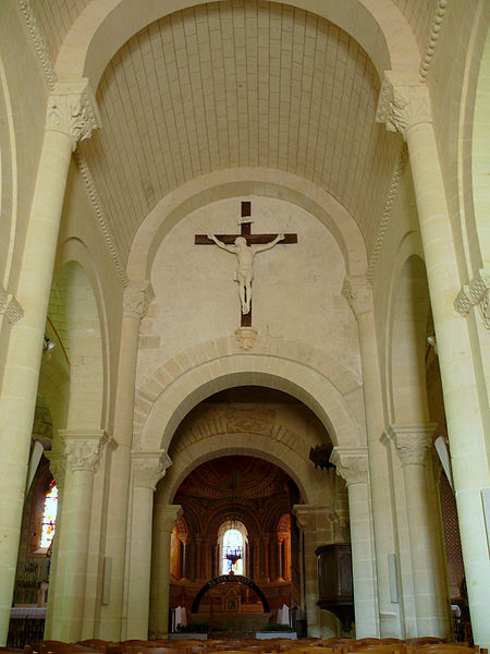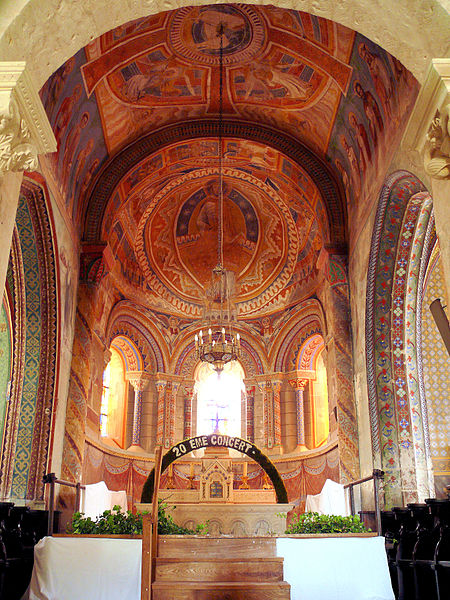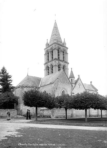 L'église Notre-Dame de Charly, dans le Cher (Centre‑Val de Loire), était autrefois un prieuré dédié à saint Symphorien et dépendait de l'abbaye bénédictine de Limoges ; elle est classée Monument historique depuis 1862 et consacrée à Notre‑Dame depuis 1854. L'édifice actuel a été bâti au XIIe siècle sur les fondations d'un bâtiment plus ancien, dont des vestiges ont été retrouvés sous le transept. Vendus comme biens nationaux en 1793, l'église et le monastère furent séparés : le prieuré fut démoli et l'église tomba en ruine. Restituée au culte catholique en janvier 1800, elle fit l'objet de réparations d'urgence en 1816. Entre 1854 et 1862, sous l'impulsion du curé Pierre‑Marie Lenoir, elle fut en partie reconstruite ; ce même abbé avait dirigé des travaux à l'abbaye Notre‑Dame de Fontgombault. Le chœur et la tour de croisée du début du XIIe siècle ainsi que les chapelles latérales à double pignon du XVe siècle ont été conservés mais légèrement remaniés : les pignons nord‑ouest et sud‑est ont été rebâtis, une baie a été percée dans le pignon nord‑est et la fenêtre de la chapelle sud a été remplacée. La nef unique a été démolie et remplacée par une nef à trois vaisseaux, et une nouvelle sacristie a été élevée au sud de la nef ; ces travaux ont été menés par l'architecte diocésain Émile Tarlier. À l'extérieur, le chevet est soutenu par des contreforts composés d'une colonne et de deux colonnettes dont les chapiteaux ont été remplacés par un décrochement de la corniche. La flèche en pierre du clocher, déjà réparée en 1880, a été entièrement reconstruite en 1932 et est flanquée de quatre pyramidons cylindriques. La chapelle latérale droite, datée du XVe siècle, est consacrée au Sacré‑Cœur. Les vitraux datent de 1863 et ont été réalisés par les ateliers Lubin à Tours. Lors des travaux, le curé Lenoir a fait découvrir et dégager des fresques dans le clocher et le chœur, puis les faire restaurer : certaines peintures antérieures, comparables à celles de l'église de Chalivoy‑Milon, ont disparu, et les décors ont été entièrement repeints, témoignant du style des peintures murales depuis 1857. Sur les murs nord et sud du chœur, Lenoir fit ajouter deux scènes copiées sur des fresques de l'abbaye de Saint‑Savin‑sur‑Gartempe, représentant Jésus‑Christ accompagné des Évangélistes et les vingt‑quatre vieillards ; le restaurateur en charge était Henri Lescalier père, peintre à Bourges. Le coût des travaux passa des 500 francs initialement accordés par la commune en 1854 à 55 000 francs, montant auquel contribua par legs un habitant de Charly, M. Chenu.