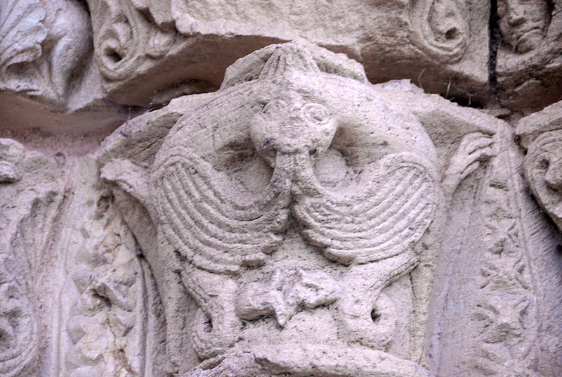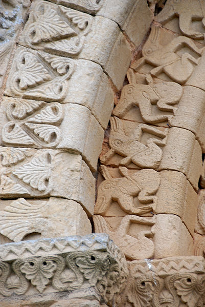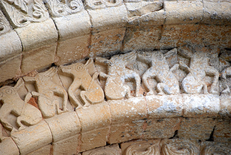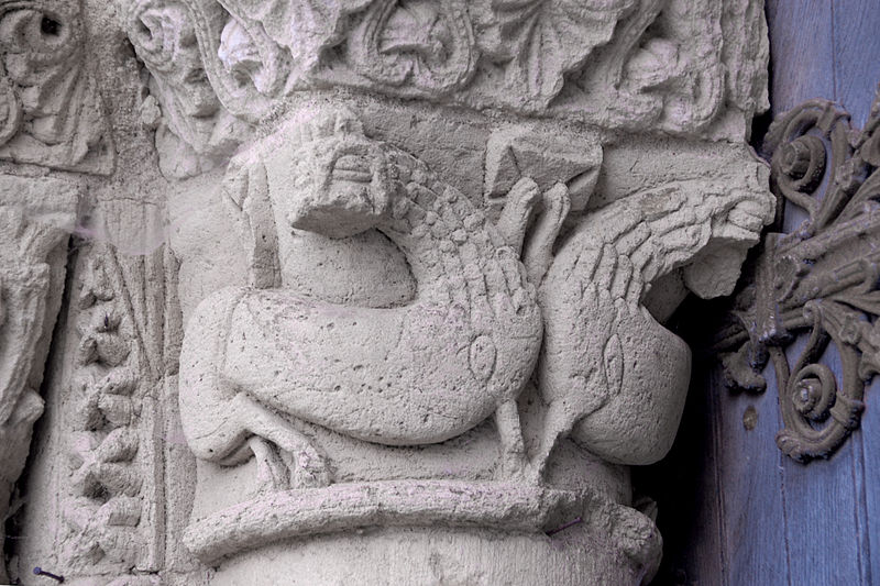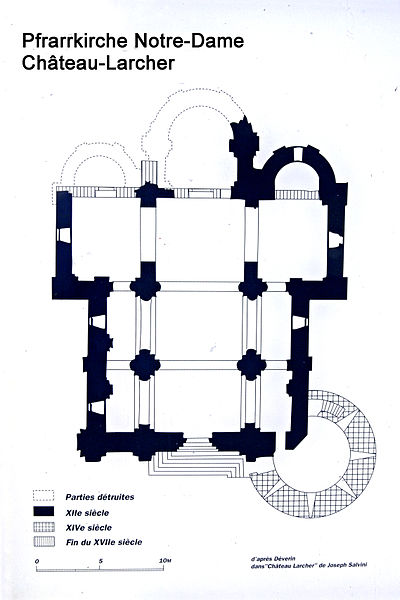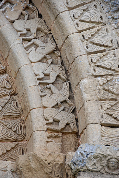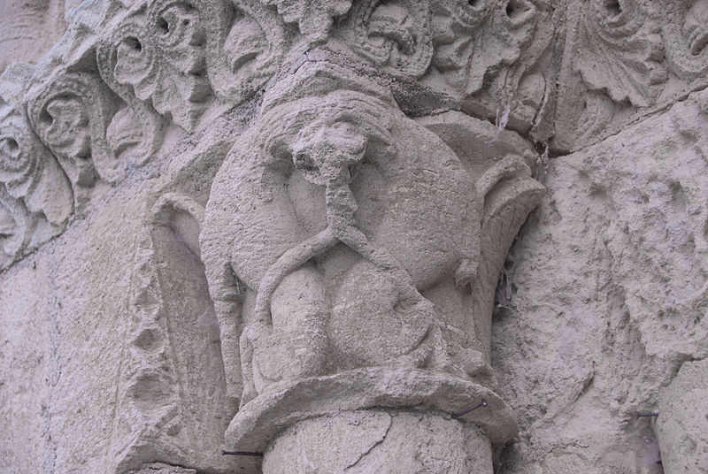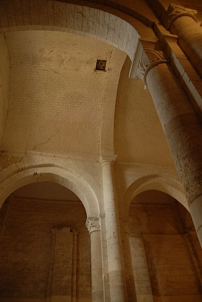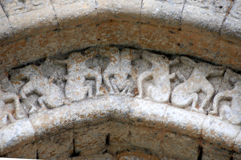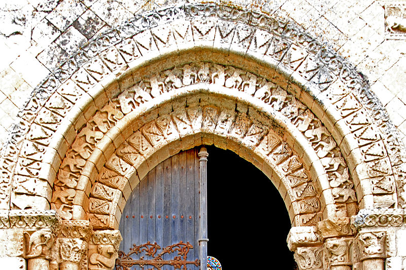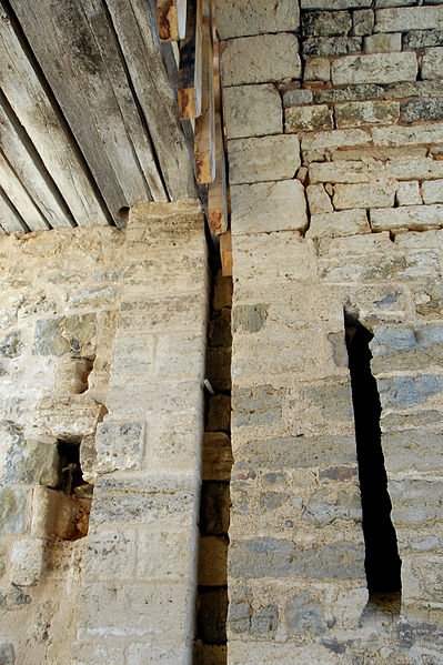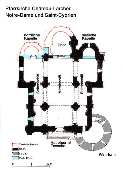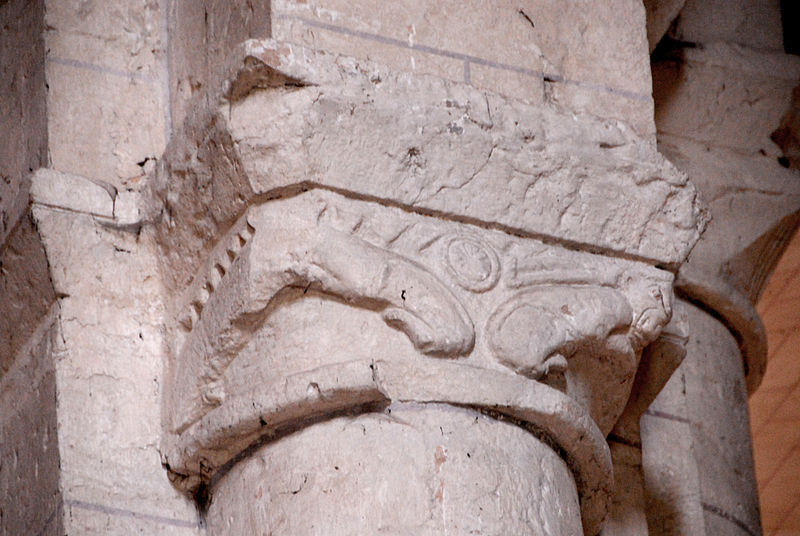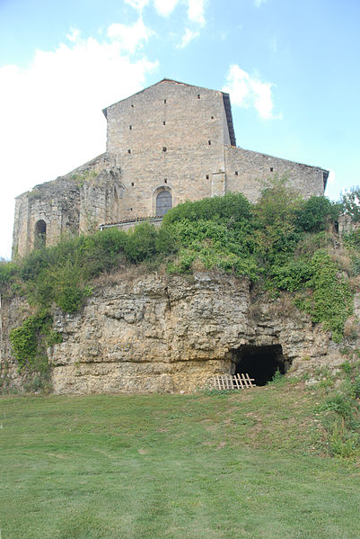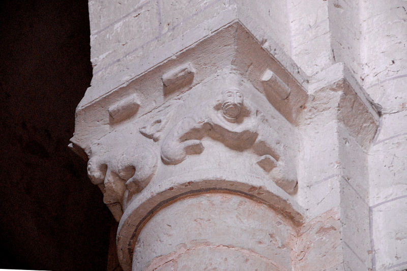 L’église est pour l’essentiel du XIIe siècle. Les murs latéraux conservent des pilastres du XIe siècle. Les trois travées originelles de la nef semblent avoir été réduites à deux, peut‑être au XIIIe siècle. Le chœur et les absides des bras du transept ont disparu pendant les guerres de Religion et ont été remplacés par un mur droit qui barre le transept. Les doubleaux des voûtes, en arcs brisés, datent du XIIe siècle, tandis que les voûtes elles‑mêmes, en plein cintre, ont probablement été refaites au XIVe siècle. Le clocher s’est effondré en 1668; il a été remplacé par un simple beffroi qui s’élève au‑dessus de la nef. Le portail, en arc brisé et composé de trois voussures, est surmonté d’une corniche à modillons; l’appareil présente un décor en losange et deux pierres sculptées.