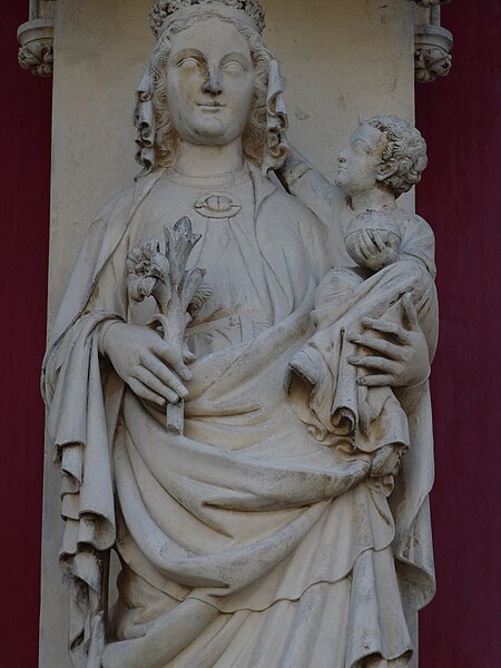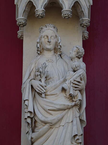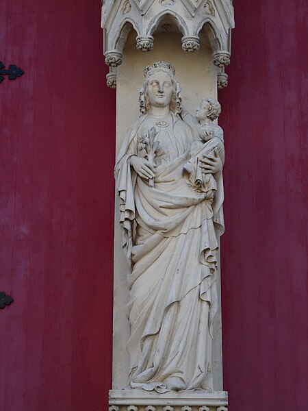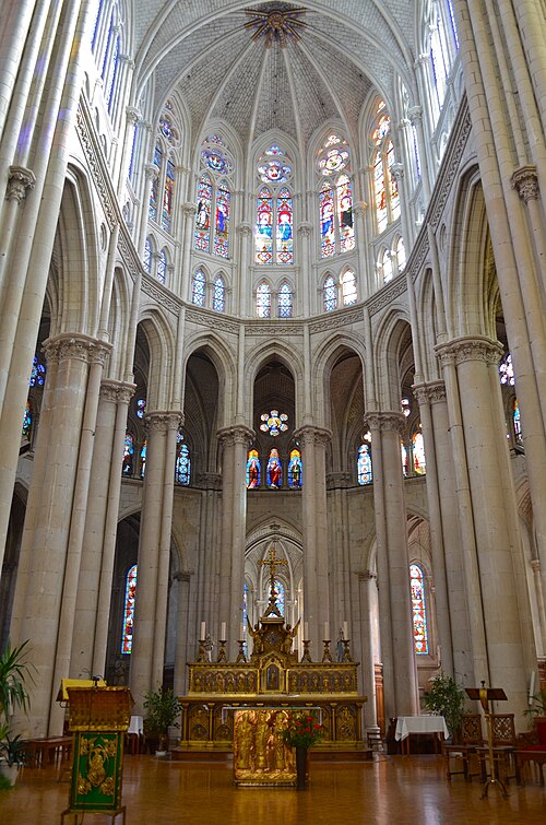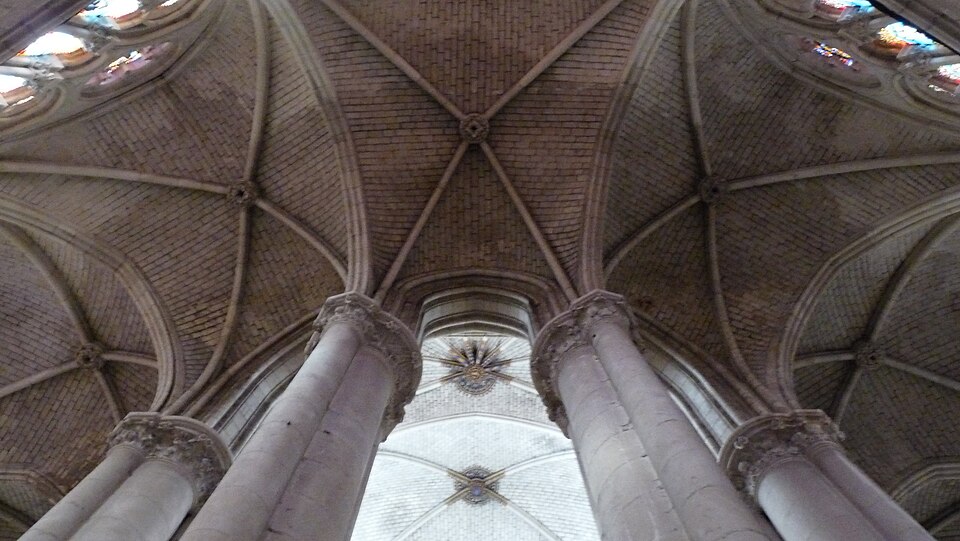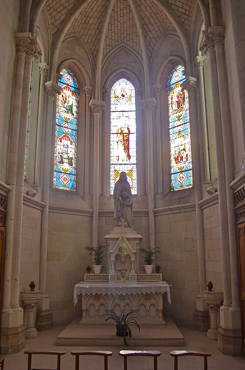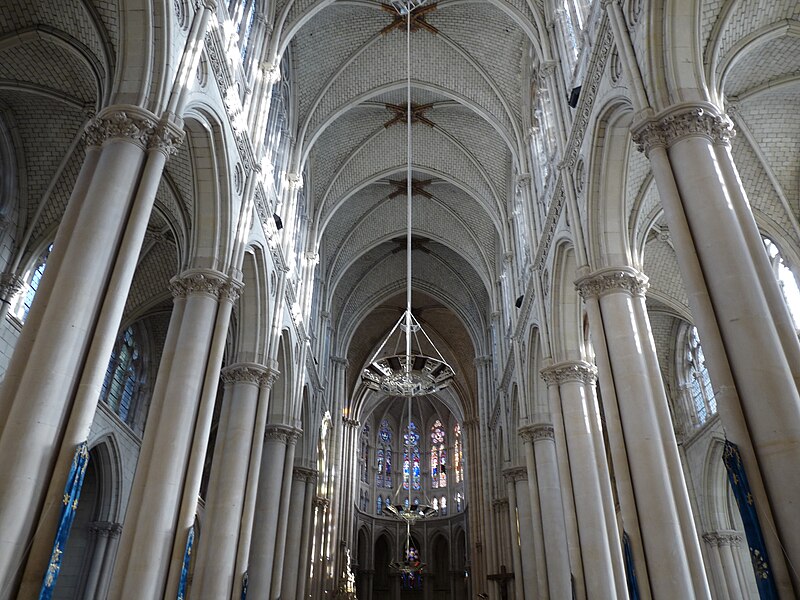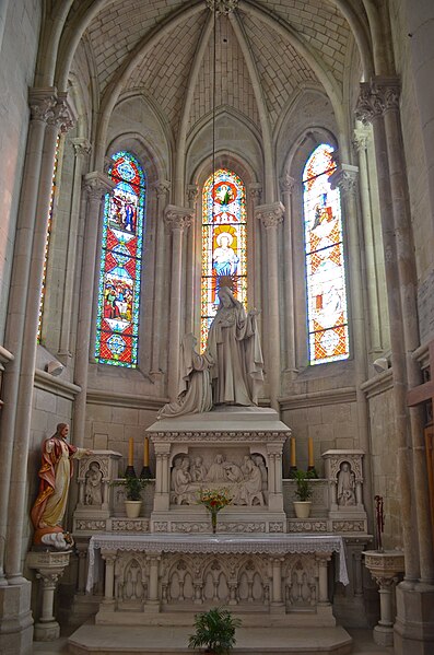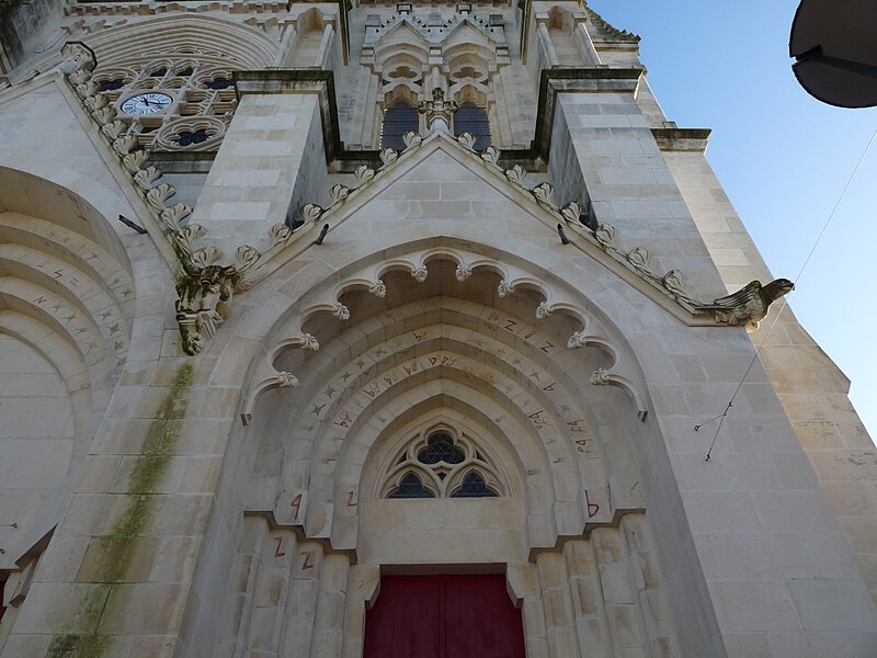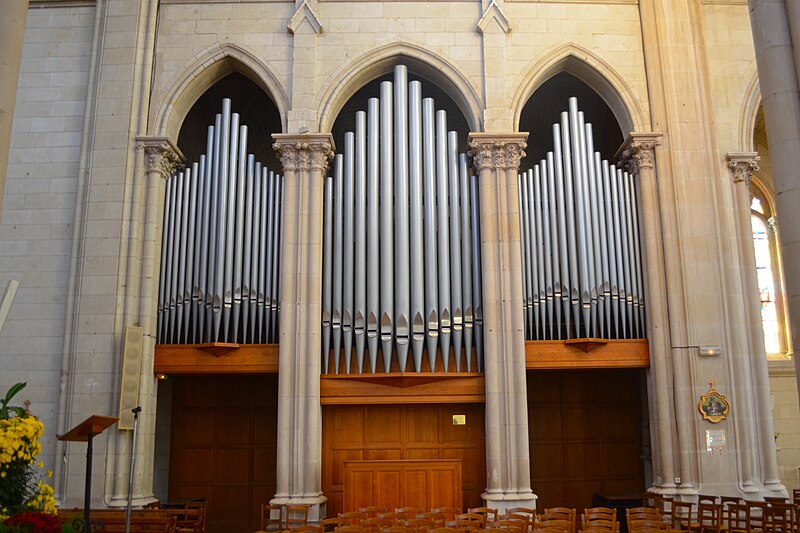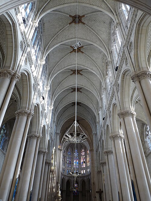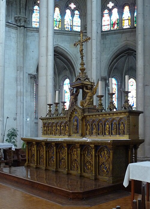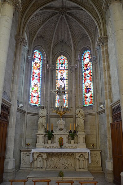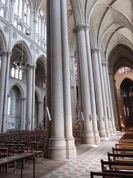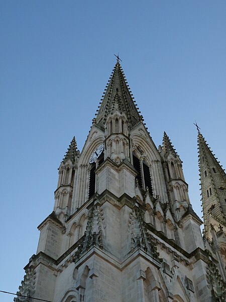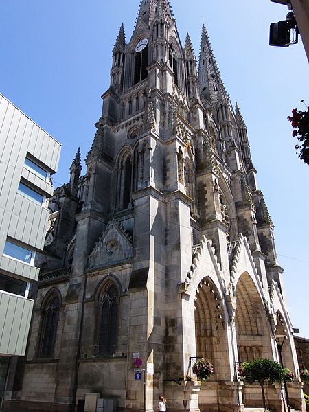 L'église Notre‑Dame se situe au cœur du centre historique de Cholet, sur le parvis Saint‑Jean‑Paul‑II près de la place Travot, dans le diocèse d'Angers (Maine‑et‑Loire). Elle occupe l'emplacement d'une priorale médiévale fondée par des religieux de l'abbaye de Saint‑Michel‑en‑l'Herm et devenue paroissiale vers 1185 sous le premier curé, Guillaume de Bland. Au XVe siècle, la chapelle du prieuré fut reconstruite en une petite église non voûtée, pourvue de bas‑côtés étroits et d'une horloge extérieure. Durant la Révolution, l'édifice échappa à la destruction en servant de magasin de fourrage, d'écurie puis de prison, mais il s'est délabré rapidement et fut fermé en 1812 pour danger d'effondrement. Démolie en 1814, elle fut remplacée par une nouvelle église achevée en 1820 grâce au curé Élie Beurier, mais celle‑ci devint bientôt insuffisante pour la population. Une quatrième construction, conduite d'après les plans de l'architecte Alfred Tessier, se déroula entre les années 1854 et 1887, marquant la transformation néo‑gothique de l'édifice. Dès les années 1850, la reconstruction s'inspira des modèles du XIIIe siècle et incorpora des éléments tels que la nef avec bas‑côtés, des chapelles latérales, un chœur à déambulatoire et chapelles rayonnantes, ainsi qu'une charpente métallique de type Polonceau. En 1872, Auguste Turpault fit don de l'autel, initialement accompagné de six bougeoirs, et d'un vitrail placé au‑dessus de la porte d'entrée, et à partir de 1883 la réalisation des deux clochers et flèches fut menée sous l'autorité de Louis‑Joseph Luçon. Propriété de la commune, l'église est inscrite au titre des monuments historiques depuis 1999. De style néo‑gothique et réalisée en pierre, elle présente un chœur à cinq absidioles, un transept et deux clochers surmontés chacun d'une flèche élancée terminée par une croix en fer forgé ; ces flèches atteignent 65 mètres au‑dessus du parvis. Ses dimensions en font la deuxième plus vaste église du diocèse, après la cathédrale Saint‑Maurice d'Angers. La façade est ornée d'une statue de la Vierge due au sculpteur choletais Stanislas Biron. L'intérieur conserve un tableau intitulé Le Triomphe de la Vierge, une peinture à l'huile du XVIIe siècle, ainsi qu'un autel du XIXe siècle pourvu d'une croix et de six chandeliers. On y trouve également deux groupes en marbre du sculpteur Hippolyte Maindron : Sainte Geneviève par ses prières désarme Attila (1857) et Le Baptême de Clovis par Saint Rémi (1865). Quatre cloches composent le carillon installé dans le beffroi nord depuis 1885 : Marie‑Joseph, bourdon de 1 500 kg baptisé en 1848 (do dièse) ; Agathe, 1 200 kg baptisée en 1847 (ré dièse) ; Magdeleine, 750 kg fondue en 1837 et sonnant l'Angélus en mi ; et Henriette, fondue en 1837 (sol dièse). Ces quatre cloches produisent les notes correspondant à la troisième octave du piano. L'orgue actuel a été construit par Joseph Beuchet entre 1965 et 1969 en intégrant l'ancien instrument de Louis Debierre, installé en 1903, et il comprend trois claviers manuels et un pédalier ; l'ancien orgue a été successivement placé au fond du chœur puis dans le transept droit, emplacement actuel de l'instrument. Des travaux de restauration portant sur les pointes de flèches, les ceintures métalliques, les contreforts et les vitraux ont été programmés pour 2016. Les représentations visuelles disponibles montrent l'édifice sous divers angles extérieurs et intérieurs, notamment la vue d'ensemble en ville, les clochers, la rosace et l'horloge Bodet, la sculpture entre les clochers, la nef, les vitraux, la chaire, les orgues et la chapelle de la Vierge. Parmi les curés successifs figurent François Rabin (1770‑1790), Élie Beurier (1802‑1824), François‑Augustin Coutant (1854‑1882), Louis‑Joseph Luçon (1882‑1888), Eugène Grellier (1888‑1893), Jean‑Baptiste Dubillot (1893‑1928), Paul Gallard (1928‑1940), Pierre Douillard (1941‑1947) et Joseph Amiot.
