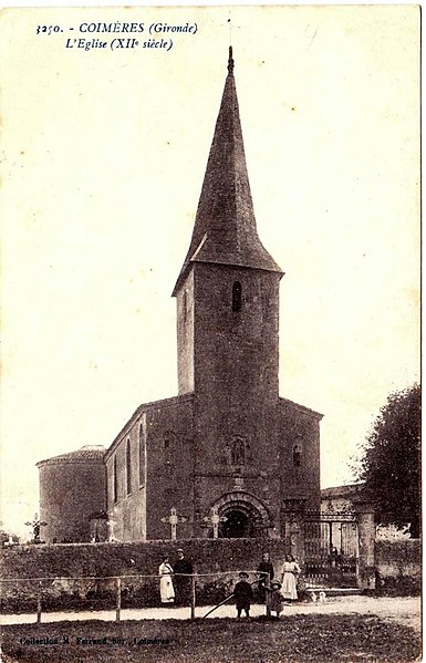 L'église Notre‑Dame de Coimères est une église catholique située dans la commune de Coimères, en Gironde, au nord du bourg et à proximité de la mairie, et elle est entourée d'un ancien cimetière. L'édifice, d'origine XIIe siècle, a été largement restructuré au XIXe siècle. Il a été classé au titre des monuments historiques par arrêté du 19 décembre 1907, notamment pour son portail qui présente trois voussures lisses reposant sur de fines colonnettes. Ce portail a par ailleurs fait l'objet d'une inscription en août 2010. Des images et des ressources documentaires se trouvent sur Wikimedia Commons ainsi que dans les bases et portails spécialisés dédiés au patrimoine et à l'architecture religieuse, comme Clochers de France, l'Observatoire du patrimoine religieux et la base Mérimée. Pour information, l'église figure parmi les monuments historiques de la Gironde.