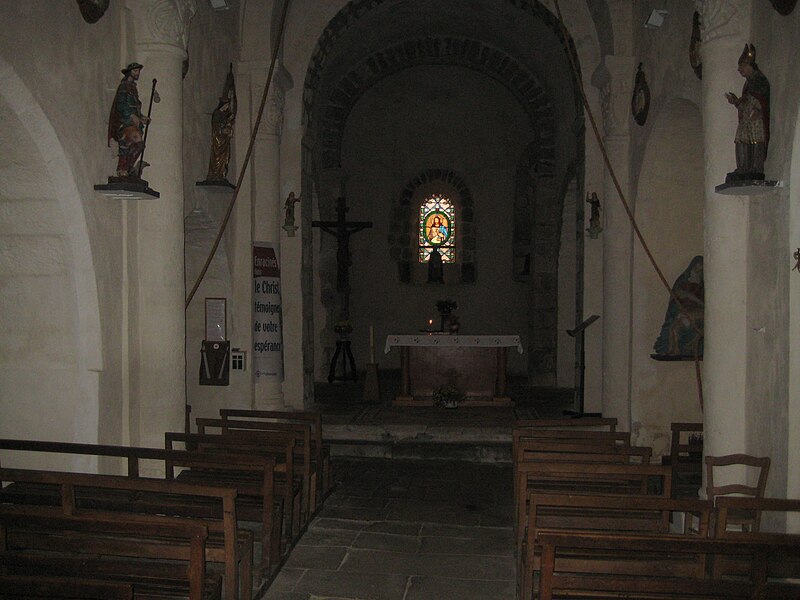 L'église Notre-Dame de Comps, située aux Ancizes-Comps dans le Puy-de-Dôme, date des XIe–XIIe siècles et a été classée au titre des monuments historiques en 1961. L'édifice, de plan orienté, présente un vaisseau central composé d'une nef, d'une travée sous le clocher (transept) et d'une travée de chœur qui se termine par une abside semi-circulaire. De part et d'autre du vaisseau central s'étendent des bas-côtés comprenant chacun quatre travées. La nef est couverte d'une voûte en berceau légèrement brisée ; à la retombée de cette voûte s'ouvrent des orifices circulaires correspondant à des vases acoustiques, chacun soutenu par un corbeau saillant. Les chapiteaux, dont les corbeilles sont sculptées, offrent des décors de feuilles d'eau, de palmettes, d'entrelacs et de personnages filiformes enchevêtrés. Sur la façade méridionale s'ouvre un portail en plein cintre dont l'archivolte est ornée d'un cordon de billettes surmonté de dents de scie ; la clé de voûte porte la sculpture d'un cheval. Un arc en plein cintre, d'ouverture plus large, surmonte le portail et forme un porche qui supporte un auvent de pierre reposant sur une rangée de sept corbeaux. Les deux corbeaux encadrant celui du milieu représentent les têtes d'un donateur et de son épouse ; les autres sont décorés d'animaux.