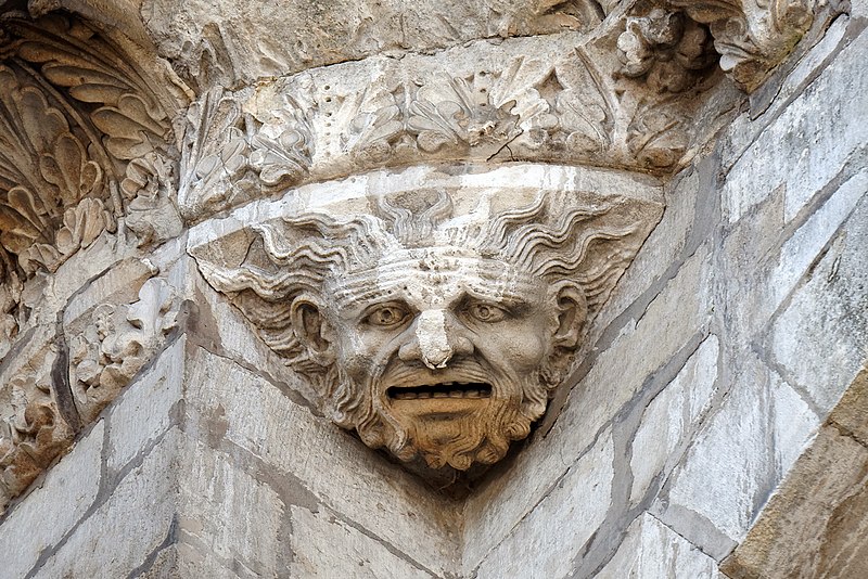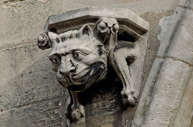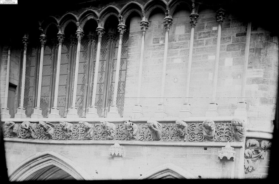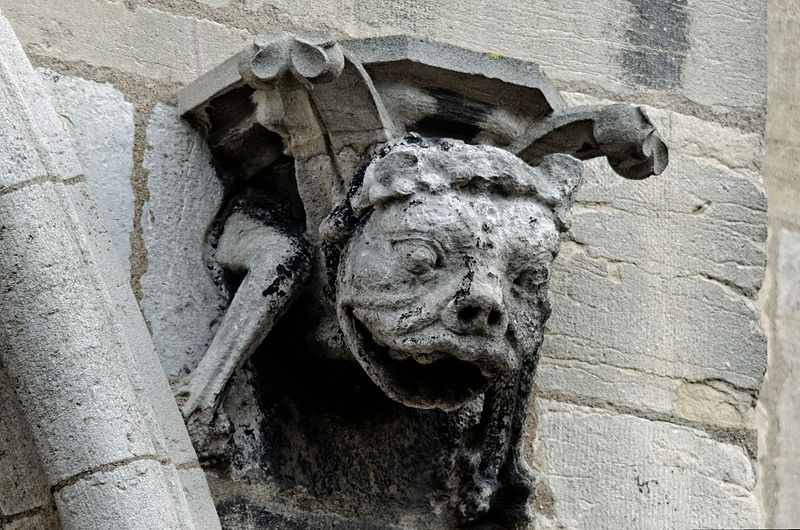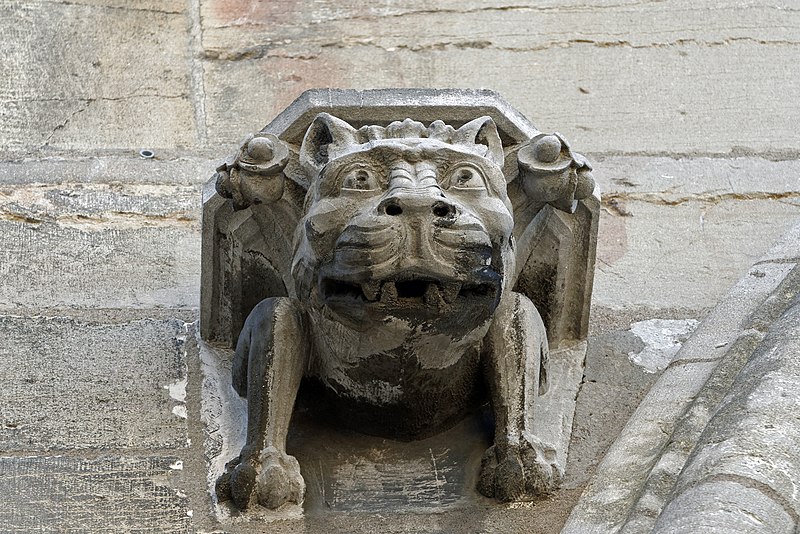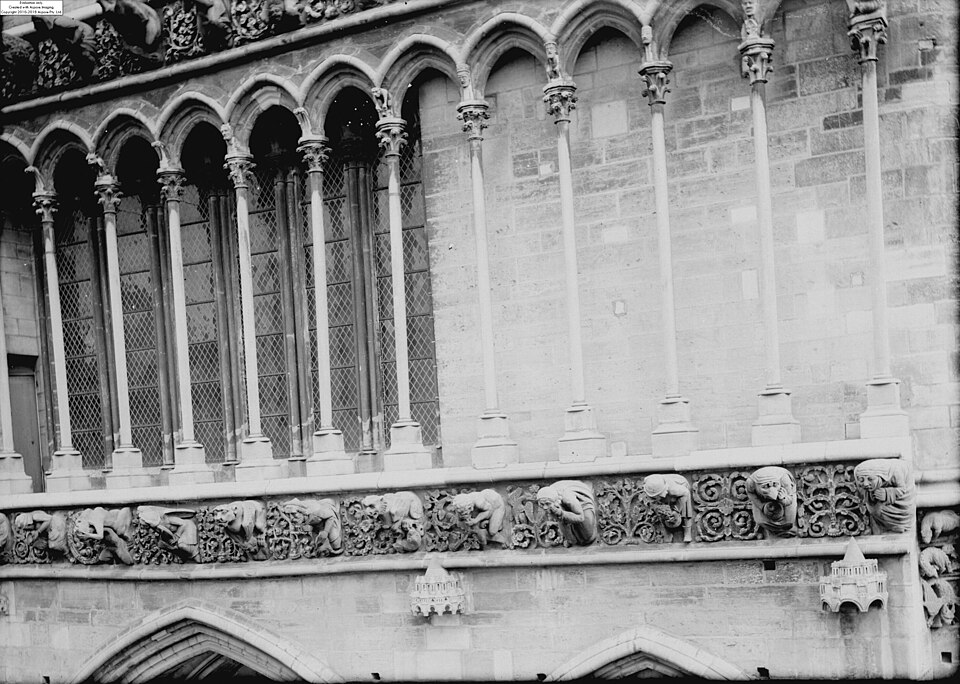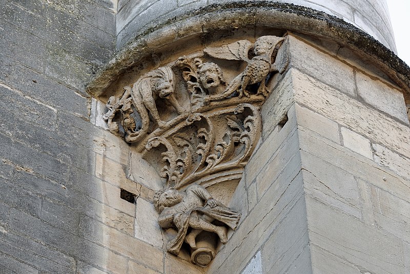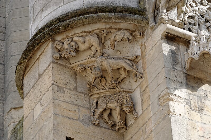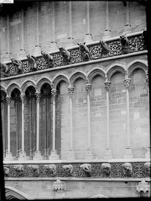 Les cinquante et une « gargouilles » de la façade sont des éléments décoratifs et ne servent pas à l'évacuation des eaux, tandis que de véritables gargouilles existent sur les murs gouttereaux et l'abside. Une première série fut retirée vers 1240 après un accident mortel mentionné par le moine Étienne de Bourbon ; les chimères actuelles, représentant humains, animaux et monstres, datent de la restauration de 1880‑1882 et sont l'œuvre de sept sculpteurs parisiens nommés dans les archives.