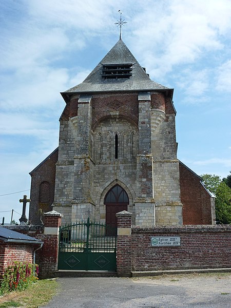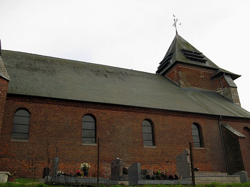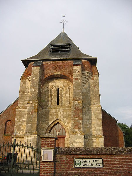 L'église Notre-Dame de Fraillicourt, dans les Ardennes, est une église fortifiée située dans la partie haute du village, à proximité de la mairie. La tour-porche, datée du XIIIe siècle et flanquée de contreforts talutés en pierre, en constitue l'élément le plus remarquable. Elle a été renforcée au XVIe siècle par une avancée en encorbellement reposant sur un arc tendu entre les contreforts et par deux soubassements de tourelles. Le portail primitif, attribué à la fin du XIIe siècle et relevant du premier âge gothique, a été conservé lors de l'édification de la tour ; il présente trois arcs brisés appuyés sur des colonnettes à bague. Les tourelles, destinées à la surveillance et au tir, sont en brique et reposent sur une base d'arcs concentriques en pierre blanche. La nef, voûtée en plafond, est bordée de bas-côtés ; ses arcades en plein cintre s'appuient sur des piles carrées à imposte. La façade nord, érigée plus tard, n'affiche pas d'éléments défensifs et porte la date de 1858 inscrite en briques vitrifiées de part et d'autre d'une fenêtre. À l'intérieur, la cuve baptismale de style roman, peut-être issue d'une église primitive, est une cuve cylindrique en pierre jaune ornée d'arcatures ; son couvercle en bois est moderne. La paroisse a appartenu au chapitre de Reims et aux seigneurs de Rozoy. L'édifice a été fortifié progressivement pour servir de refuge lors d'invasions ou de guerres civiles, notamment pendant les guerres de Religion puis la Fronde, en raison de la proximité de Guise, des ducs liés à la Ligue catholique, de la principauté protestante de Sedan et des itinéraires accessibles aux troupes espagnoles venue de Flandre ou aux troupes allemandes. L'église est inscrite au titre des monuments historiques en 1928.