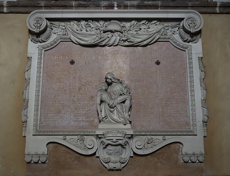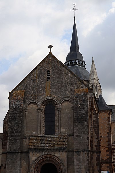 L'église Notre‑Dame de Fresnay‑sur‑Sarthe se situe dans le centre-ville de Fresnay‑sur‑Sarthe, dans le département de la Sarthe. Sa construction remonte au troisième quart du XIIe siècle ; l'édifice se composait à l'origine de trois travées terminées par un chevet en hémicycle. Pour Eugène Lefèvre‑Pontalis, le mélange d'assises de couleur, comparable à celui des bas‑côtés de la cathédrale du Mans remaniée par l'évêque Guillaume de Passavant et consacrée en 1158, suggère que la construction de l'église est postérieure à celle de la cathédrale. Dans le bulletin paroissial de 1924, le chanoine Didion attribue la construction à Roscelin, vicomte de Beaumont, et indique qu'elle aurait été commencée sous le prieur de Saint‑Léonard Jean de Pontlogot, moine de Saint‑Aubin d'Angers, présent à Fresnay de 1158 à 1170 ; selon lui, les travaux auraient débuté par le chœur en hémicycle et été poursuivis par les travées, la troisième travée, la façade et le clocher étant édifiés sous Richard, successeur de Roscelin. L'appareil varie selon les travées : la première travée est en pierre calcaire, la deuxième associe pierres blanches et grès roussard jusque dans les ogives, et la troisième est uniquement en roussard, comme la façade. La travée proche du chœur, qui supporte le clocher, est plus solidement bâtie. Les deux doubleaux latéraux sont à double rouleau, tandis que les autres doubleaux sont formés d'un seul rang de claveaux. En 1865‑1866, un croisillon a été ajouté de chaque côté de la dernière travée pour former un transept ; pour les relier à la nef, les murs latéraux de cette travée ont été démontés et remontés à l'extrémité des croisillons, puis remplacés par deux grands arcs brisés, similaires à ceux de la nef mais moins hauts et plus étroits, retombant sur des demi‑colonnes. L'ensemble de l'église a fait l'objet d'une restauration en 1881, accompagnée de peintures murales. Le clocher se compose d'un soubassement carré sans ouverture, orné seulement de petites colonnes engagées aux angles, d'une tour octogonale éclairée par huit fenêtres géminées et dont le passage du carré à l'octogone est masqué par quatre clochetons hexagonaux, puis d'une flèche en bois couverte d'ardoise ; la flèche a été restaurée en 1954 et une petite galerie rétablie au tiers de sa hauteur. La porte principale en chêne, datée de 1528, comporte deux vantaux à deux parties inégales ; la partie supérieure du vantail gauche est divisée en treize panneaux figurant l'arbre de Jessé avec la Vierge et l'Enfant au sommet, tandis que le vantail droit, divisé en quinze panneaux, présente au sommet le Christ crucifié entouré des deux larrons et les apôtres sur les autres panneaux. Lors de travaux de restauration du mur, une stèle funéraire de 60 × 40 cm, datée du milieu du XVe siècle et représentant un homme et une femme aux pieds des saints Come et Damien, a été découverte à la fin du XIXe siècle ; la pierre tombale de Jean Brindel a été mise au jour en 1910. Certaines statues, décapitées probablement lors du sac de l'église par les protestants en 1562, ont été refaites en 1909 par le sculpteur Le Feuvre, du Mans. L'église abrite un orgue de 12 jeux construit par la maison L. Debierre‑G. Gloton à Nantes à l'initiative de l'abbé Didion ; l'instrument, réalisé à partir de 1931, a été inauguré le 17 juillet 1932 par Léon Biautte et béni le 16 octobre 1932 par l'évêque du Mans Georges Grente. Le mobilier comprend des bénitiers donnés en 1679 et des bancs de bois datant de 1766. L'édifice est classé au titre des monuments historiques depuis le 11 décembre 1912, à l'exception des deux chapelles modernes de l'abside.