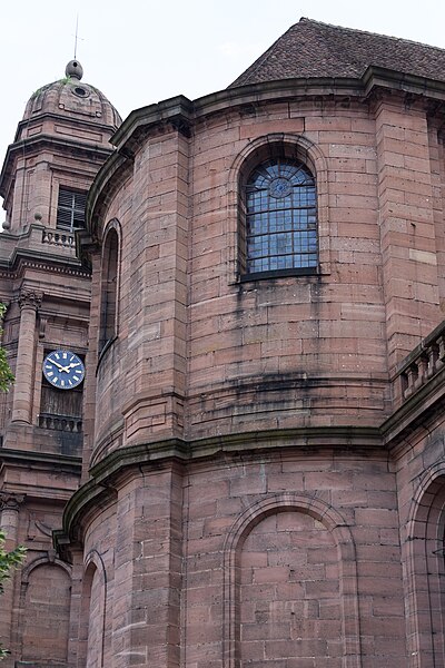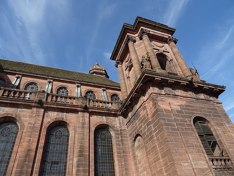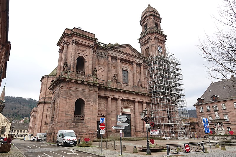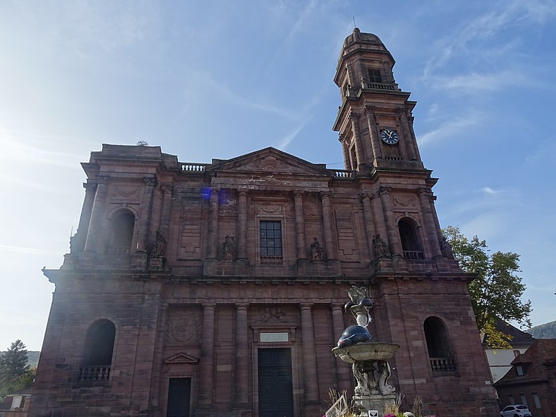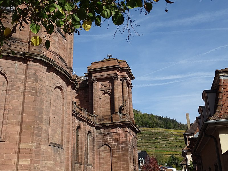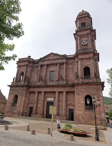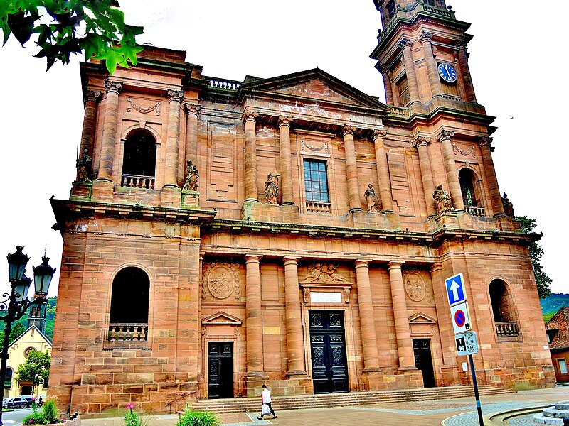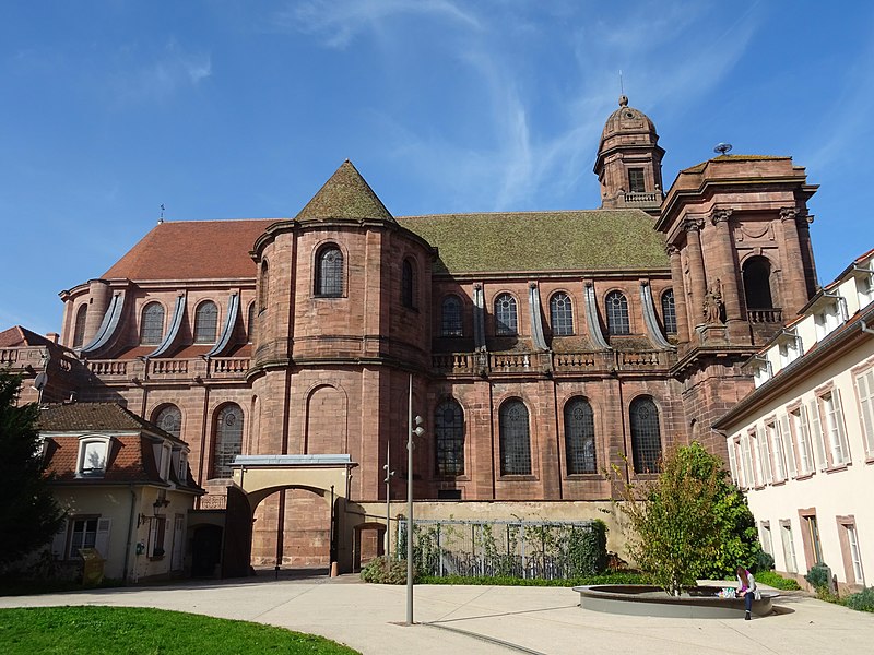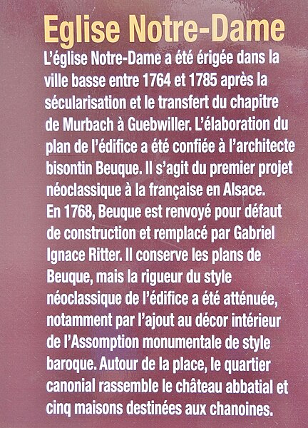 L'église Notre‑Dame de Guebwiller, située dans le Haut‑Rhin, est une ancienne collégiale abbatiale de style néo‑classique construite en grès rose. Elle figure parmi les plus imposantes constructions religieuses de la région et est classée au titre des monuments historiques depuis 1841. L'abbaye de Murbach, dont l'apogée remonte au XIIe siècle, possédait des biens de part et d'autre du Rhin et a fondé Lucerne en 1178. Au fil des siècles la communauté se réduit ; ses moines, issus de la noblesse locale, souhaitent quitter le vallon isolé de Murbach pour s'installer à Guebwiller, centre de leurs possessions en Haute‑Alsace. Après plusieurs décisions ecclésiastiques et royales, le transfert officiel de l'abbaye à Guebwiller est entériné par un bref pontifical en 1759, puis par des mesures de sécularisation et des lettres‑patentes de Louis XV en 1764‑1765. La construction d'une nouvelle église abbatiale est engagée sous l'impulsion du prince‑abbé de Rathsamhausen à partir de 1765. Jean Querret, auteur de récentes reconstructions d'abbatiales, recommande Louis Beuque pour la conception, mais le chantier est rapidement marqué par des conflits de direction et des critiques sur l'exécution des travaux. Après expertises et interventions de l'Académie royale d'architecture, Louis Beuque est écarté en 1768 et Gabriel Ignace Ritter prend alors la direction des travaux. Ceux‑ci reprennent en 1770 selon les plans initiaux : la charpente est posée en 1773, la façade couronnée en 1778 et, hormis les tours, le gros‑œuvre est achevé en 1779. De 1780 à 1783 la décoration et le mobilier sont réalisés dans un style mêlant classicisme français et baroque germanique ; Fidèle Sporer exécute notamment l'Assomption de la Vierge dans le chœur. L'église, devenue collégiale équestre et princière après la sécularisation, est consacrée solennellement en 1785. En 1792 elle devient église paroissiale de Guebwiller et, en 1803, une partie du mobilier de l'ancienne église Saint‑Léger y est transférée. La poursuite des travaux pour les tours est reprise au milieu du XIXe siècle : le projet de l'architecte Caillot est retenu et la construction de la tour nord, conduite par l'ingénieur François‑Jacques Grün, a lieu entre 1844 et 1846 ; la tour sud n'a pas été réalisée. L'édifice a fait l'objet de restaurations successives en 1805, 1885, 1915, 1935 et 1948. L'intérieur se distingue par une décoration stuquée abondante, l'Assomption du chœur qui culmine à dix‑sept mètres, de remarquables boiseries de Fidèle Sporer et plusieurs tableaux des XVIIIe et XIXe siècles. La tour abrite cinq cloches, dont la plus grande pèse plus de trois tonnes et dont deux datent de 1718. Le buffet de l'orgue a été installé en 1785 par le facteur Joseph Rabiny ; la partie instrumentale, reconstruite en 1908 par Charles Mutin, comprend 45 jeux. L'orgue a bénéficié de réparations à diverses époques mais se trouve aujourd'hui en très mauvais état et nécessite une restauration profonde ; en attendant, la paroisse a nommé un conservateur d'orgue, Thierry Mechler. Pour l'historien Franz Xaver Kraus, l'église de Guebwiller est l'une des meilleures œuvres d'architecture de style rococo.