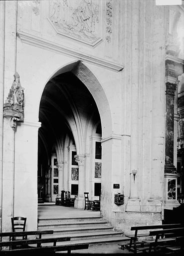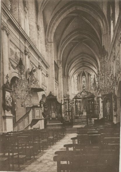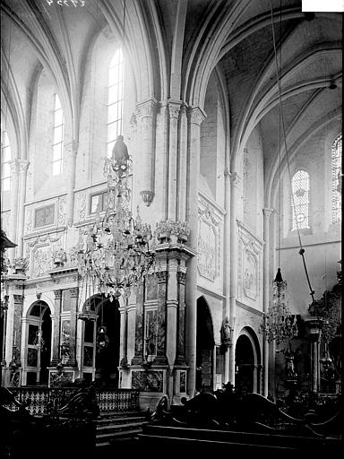 Le maître‑autel en bois peint noir et rouge, surmonté d'un baldaquin soutenu par des colonnes d'ordre corinthien et décoré de vases de fleurs sculptés, date du XVIIIe siècle et est classé au titre des objets depuis le 4 janvier 1915. Des orgues construites en 1763 par Louis Péronart furent détruites pendant la Première Guerre mondiale ; un instrument reconstruit par la maison Cavaillé‑Coll‑Convers et installé en 1934 fut à son tour perdu pendant la Seconde Guerre mondiale. L'orgue actuel, construit en 1950 par les établissements Beuchet‑Debierre en réutilisant le buffet précédent, est de style néo‑classique, doté de trente‑six jeux, de trois claviers manuels et d'un pédalier de trente‑deux notes ; il a été relevé en 1990.