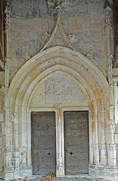 L'église Notre‑Dame de Hautefage‑la‑Tour (Lot‑et‑Garonne) se situe en contrebas de la tour épiscopale. Elle tire son origine d'une chapelle bâtie sur une fontaine réputée depuis le Moyen Âge pour ses vertus miraculeuses ; Anne de Beaujeu y vint et, selon la tradition, donna naissance à une fille après sa visite, et les dons des pèlerins, parmi lesquels figure Alain d'Albret, ont financé la construction. Selon Georges Tholin, l'édifice a été construit à la fin du XVe siècle, plusieurs éléments intérieurs corroborant cette datation, tandis que le décor sculpté du portail nord semble appartenir au début du XVIe siècle ; la chapelle sud, la sacristie et le presbytère sont d'époques plus tardives. Au début des guerres de Religion, les fonts baptismaux furent transférés de l'église paroissiale Saint‑Pierre de Sarrède à Notre‑Dame, qui fut alors fortifiée ; en 1561 les protestants prirent le village et pillèrent les deux églises, vidant Notre‑Dame de ses ornements, puis des réparations furent entreprises. L'église devint paroissiale en 1595 par ordonnance de l'évêque Nicolas de Villars, qui consacra le maître‑autel en 1598. En 1632 elle est décrite avec la fontaine sous l'autel, entièrement voûtée et flanquée d'une chapelle dédiée à Saint‑Louis, dite Saint‑Éloi lors de la visite pastorale de 1668. La nef se compose de deux travées presque carrées, voûtées en croisées d'ogives légèrement surhaussées ; le chœur se termine par une abside à pans coupés et les retombées s'appuient sur deux colonnes engagées dont les chapiteaux sont à peine indiqués. La voûte du sanctuaire est soutenue par sept arcs qui se rejoignent en une clé commune, l'un de ces arcs correspondant au centre de l'arc triomphal. L'entrée s'ouvre par un portail divisé en deux par un meneau ; son tympan portait des armoiries mutilées et était surmonté d'un motif partiellement coupé par un appentis formant porche, cet appentis ayant été supprimé en 1866 et remplacé par l'auvent actuel. L'église a conservé sa charpente primitive. Le presbytère, adossé au flanc sud et daté des XVIIe et XVIIIe siècles, comporte un niveau de commun, un niveau d'habitation et un niveau de comble organisés autour d'une cour ; les pièces d'habitation sont desservies par une galerie en L formée d'arcades maçonnées et de poteaux de bois, et les ouvertures extérieures datent du XVIIIe siècle. Pour parer des mouvements de terrain, un contrefort a été établi contre le pignon ouest vers le milieu du XIXe siècle ; le projet de 1871 du directeur des travaux G. Belhomme de renforcer et de reconstruire le pignon ne semble pas avoir été réalisé, mais des travaux d'amélioration sont mentionnés en 1873 et des ouvrages d'embellissement en 1877 d'après un devis d'Adolphe Gilles. En raison de problèmes de stabilité de la façade occidentale, la canalisation de la source a été améliorée en 1993 et l'édifice est depuis en cours de restauration. L'église est classée au titre des monuments historiques le 17 mai 1921 et le presbytère a été inscrit le 15 septembre 1994.