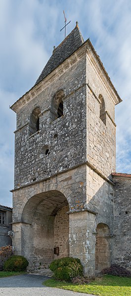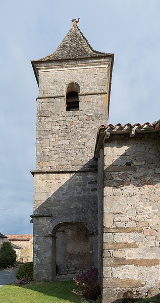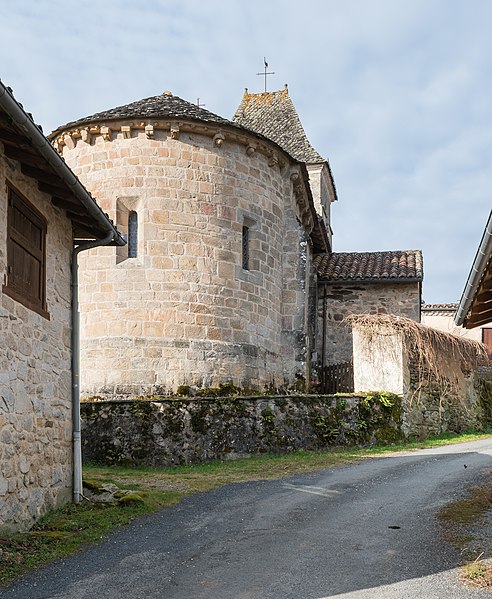 L'église de Lentillac, dédiée à Notre‑Dame‑de‑l'Annonciation, se trouve à Latouille‑Lentillac dans le département du Lot. Elle conserve des éléments romans du XIIe siècle : murs épais appuyés de contreforts, fenêtres en plein cintre et surtout une abside en pierre de taille précédée d'une travée droite. Le chevet et la toiture de la travée de chœur sont couverts de schiste local sans charpente, et l'abside est voûtée d'ogives tandis que la travée qui la précède est en berceau brisé. L'édifice présente un plan simple à nef centrale avec chapelles accolées et un clocher‑porche à l'ouest ; la chapelle latérale nord a été très remaniée. La voûte médiévale de la nef a disparu ; le texte signale à la fois une voûte moderne en plâtre et le remplacement ancien par un lambris de couvrement réalisé lors de campagnes du milieu du XVIIIe siècle, lambris qui a été refait au XXe siècle. Un vantail du portail ouest porte la date de 1740 et la porte sud est datée de 1769, cette dernière mention étant tenue pour liée à la construction du bas‑côté sud. Le clocher‑porche porte la date de 1821. La corniche de l'abside est ornée de modillons sculptés de têtes d'hommes et d'animaux, et des vestiges d'un décor antérieur au XIXe siècle subsistent sur l'arc d'entrée de la chapelle nord. L'édifice a été classé au titre des monuments historiques le 14 février 1938.