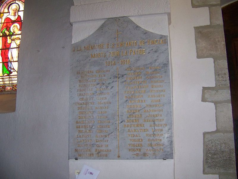 L'église Notre-Dame-de-l'Annonciation, édifice catholique situé à Vinezac en Ardèche, est classée au titre des monuments historiques depuis le 23 juillet 1907. Le village de Vinezac est mentionné dès le VIIIe siècle et l'église apparaît dans les sources en 1255, lors d'un échange par lequel l'évêque de Viviers la cède à Arnaud de Vogüé du chapitre d'Aubenas. Elle fut intégrée à l'enceinte fortifiée pendant la guerre de Cent Ans. Le clocher a été déplacé pour une raison inconnue entre 1676 et 1714, et deux nefs latérales ont été ajoutées au XIXe siècle. L'édifice présente un plan carré et un chevet polygonal. Les chapiteaux, taillés dans le grès local, représentent des animaux fantastiques, des feuillages — acanthes et palmiers — ainsi que des anges. La coupole est ornée de fresques représentant les quatre évangélistes et les vertus théologales.