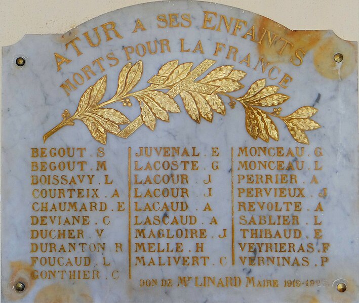 L'église Notre-Dame-de-l'Assomption, dite aussi église Saint-Jean, est située dans le bourg d'Atur, en Périgord central, dans le département de la Dordogne. D'architecture romane, l'édifice est à nef unique longue de 30 mètres pour 8 mètres de largeur et se prolonge par un avant-choeur couvert d'une coupole surmontée d'un clocher carré, lui-même posé sur une coupole octogonale; le chœur est voûté en berceau. La nef actuelle est couverte d'une voûte en berceau qui a vraisemblablement remplacé une voûte antérieure; la chapelle latérale gauche, plus récente, est voûtée d'ogives dont les colonnes de support ont été coupées à leur base. Le portail sud, daté du XVe siècle, s'ouvre par un arc en plein cintre à quatre voussures moulurées, prolongées par de fines colonnettes; l'archivolte extérieure repose sur des culs-de-lampe figurant des angelots et une tête grimaçante orne le sommet des voussures. L'édifice a été fortifié; il subsiste des mâchicoulis et le clocher carré a été contrebuté au XIXe siècle. La chapelle de la Vierge, ouverte côté nord de la nef par un arc en plein cintre, est voûtée d'une croisée d'ogives dont les retombées s'appuient, du côté de la nef, sur des culots représentant un angelot portant un blason à l'ouest et un dragon à l'est; cette chapelle est surmontée d'une chambre de défense accessible par un escalier à vis. Peu de documents permettent de reconstituer l'histoire complète de l'église; le plus ancien connu est le compte rendu d'une visite canonique de 1688, qui signale que la nef paraissait alors voutée mais non lambrissée, pavée ni vitrée. Il est probable que des destructions ont résulté de la guerre de Cent Ans et des guerres de Religion; l'arc en plein cintre du chœur, côté nef, porte la date de sa restauration en 1757. En 1812, Pierre Benoît de Laubrenet alerta le préfet sur l'état de l'édifice; des travaux furent entrepris en 1876 par l'architecte Meunier de Périgueux, qui réalisa notamment une voûte en plâtre et des lattis. Des campagnes de restauration ont mis au jour des peintures murales : en 1989 des peintures datées des XIVe–XVe siècles représentant une tête de chevalier et un rempart, et en 2016 une fresque XIVe–XVe siècle masquée sous une peinture du XIXe siècle. Le mobilier comprend une cuve baptismale du XVe siècle de forme octogonale, décorée de huit blasons et reposant sur un cylindre à neuf pieds rayonnants, un meuble de sacristie à deux corps de style Louis XV et daté du XVIIIe siècle, une chaire en noyer du XVIIIe siècle ornée des quatre évangélistes, un retable en noyer du XVIIIe siècle porté par un autel en bois du XIXe siècle, une sculpture polychrome représentant la Trinité (XVIIIe siècle) et trois tableaux du XIXe siècle en mauvais état dont l'un représente saint Jean-Baptiste baptisant Jésus. Sur la façade sud, deux vitraux signés Henri Audoynaud, peintre verrier à Périgueux, datés de 1870, représentent la Vierge à l'Enfant et saint Jean-Baptiste; deux autres vitraux du XXe siècle sont signés du maître périgourdin Louis Martin. L'édifice est inscrit au titre des monuments historiques et renferme deux objets classés : la cuve baptismale du XVe siècle et le meuble de sacristie de style Louis XV.