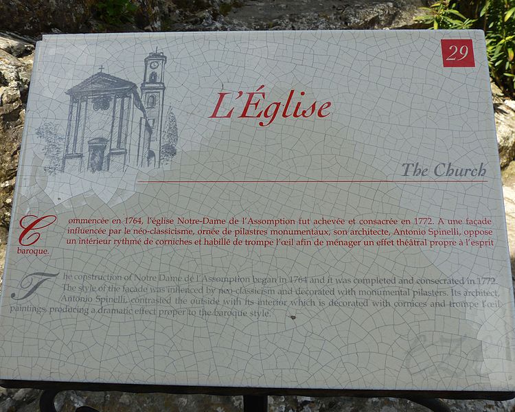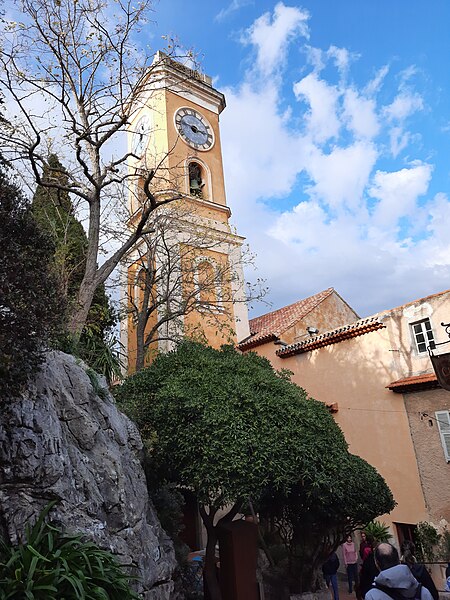 L'église Notre-Dame de l'Assomption d'Èze est un édifice néoclassique du XVIIIe siècle, situé à Èze dans les Alpes-Maritimes et dédié à Notre-Dame de l'Assomption. Elle a été classée au titre des monuments historiques le 5 décembre 1984. L'édifice remplace une église antérieure tombée en ruine et a été reconstruit entre 1764 et 1778 par l'architecte italien Antoine Spinelli, à la demande du duc Charles-Emmanuel III de Savoie. L'architecte reçut un capital en paiement le 7 décembre 1778 et, d'après l'acte de cession, la construction était alors presque achevée mais pas entièrement terminée. Le prieur d'Èze, Charles-François Fighiera, demanda la consécration à l'évêque de Nice, Mgr Astesan ; une cérémonie eut lieu le 17 mai 1772. Deux cloches, nommées Marie-Madeleine et Laurence, furent consacrées par l'évêque le 26 septembre 1777. Charles-François Fighiera offrit des reliques de saint Germain le 16 août 1778. Une autre mention indique une consécration le 17 mai 1779. L'église a fait l'objet de réparations en 1887. Le clocher, élevé au XIXe siècle, a été à plusieurs reprises frappé par la foudre, ce qui a entraîné la disparition de la coupole d'origine ; le cadran de l'horloge, de couleur bleue, évoque la Vierge. La façade ocre, de style néoclassique, est percée d'un œil-de-bœuf, rythmée par des doubles pilastres d'ordre corinthien et flanquée d'un clocher carré à deux niveaux. L'intérieur contraste avec l'extérieur : une nef unique de style baroque, ponctuée de chapelles latérales, présente un riche décor. Le patrimoine mobilier de l'église est signalé sans autre précision. Parmi les sépultures, celle de Francis Blanche (1921-1974) porte l'épitaphe « Laissez-moi dormir, j'étais fait pour ça ».