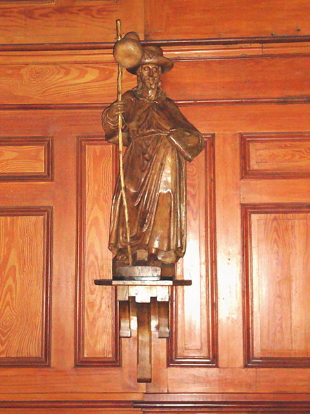 L'intérieur, dédié à l'Assomption, conserve des éléments anciens et des décors remaniés au XIXe siècle. Trois objets protégés figurent parmi les mobiliers : un crucifix en ivoire du XVIIe siècle installé dans le chœur au‑dessus d'une statue de Notre‑Dame‑de‑Lourdes, et une statue de saint Jacques de Compostelle en bois massif du XVIIIe siècle dont les attributs ont disparu. Les fonts baptismaux actuels datent de 1902 ; ils sont liés à Nathalie de Serbie et auraient été dessinés par la princesse Ghika, sœur de Nathalie, qui en fit l'offrande au début du XXe siècle. Il s'agit d'un triptyque de style byzantin dont la peinture centrale symbolise la grâce du baptême, encadrée à gauche par Jeanne d'Arc et à droite par saint Louis ; le bandeau illustre à gauche un cortège de baptême inspiré de la chapelle d'Uronea et, à droite, les différents âges de la vie. Les vitraux, du XXe siècle et d'inspiration Art nouveau, forment deux groupes : à gauche trois verrières consacrées à l'Eucharistie (nourriture, sacrifice, papauté), à droite des panneaux évoquant la foi, la lumière et la prière. Le porche d'entrée est pavé de dalles funéraires anciennes et surmonté d'une salle capitulaire qui abritait les archives et les délibérations des jurés et maîtres de maisons.